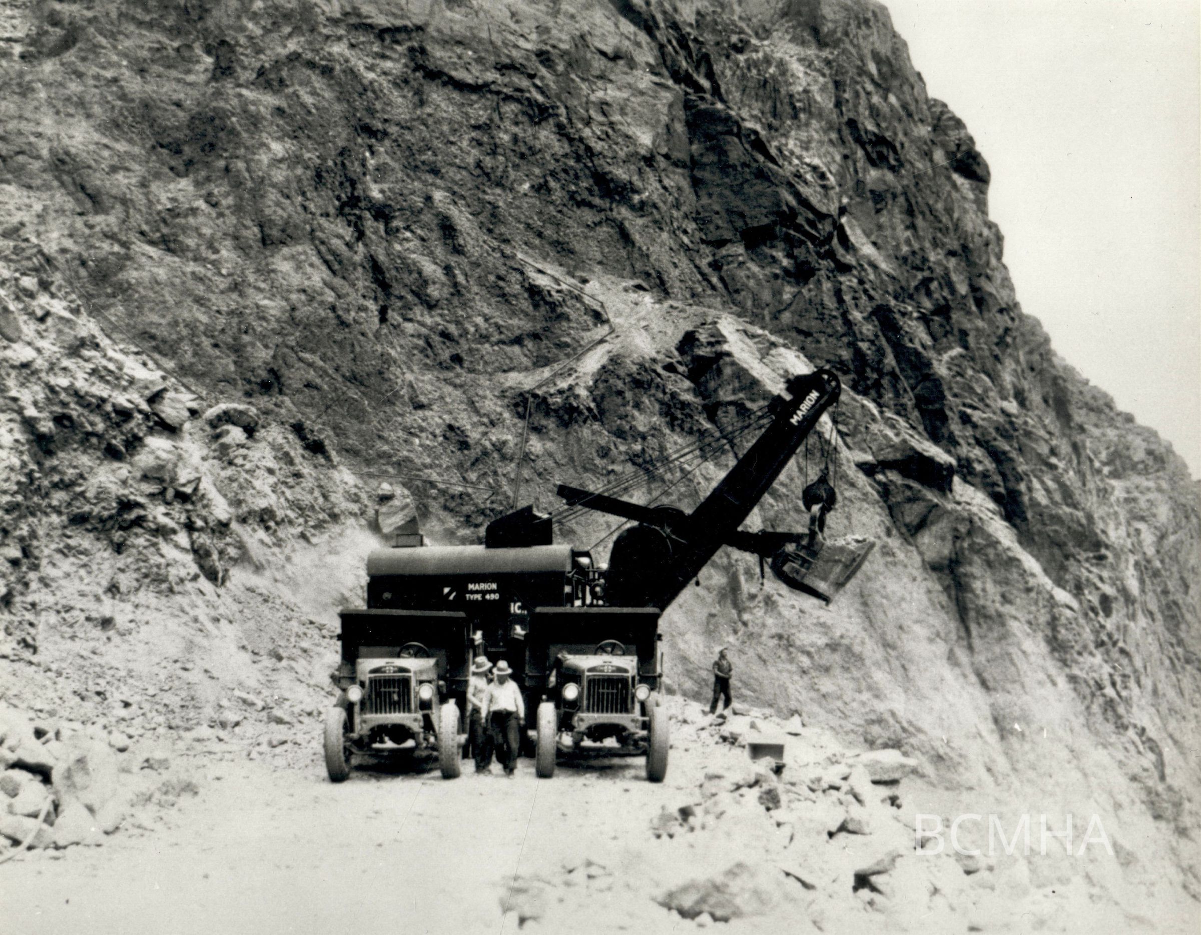 Power shovel cutting approach to lower end of diversion tunnels. (This would be the NV. tunnels nos. 1 (NV. outer) & 2 (NV. inner))Created By