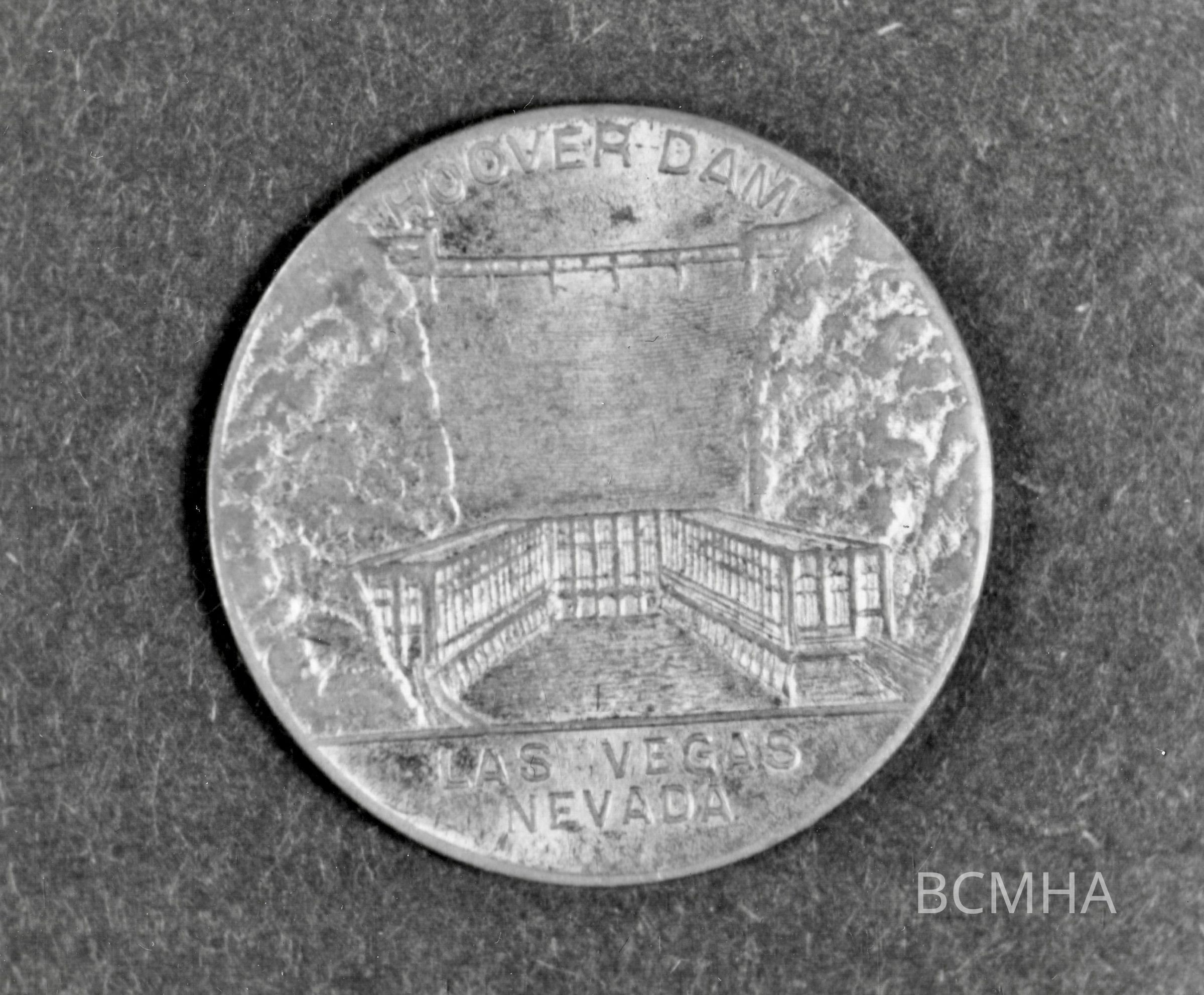 Hoover Dam construction: Commemorative coin, 1931 [These coins were sponsored by the Las Vegas Chamber of Commerce to commemorate awarding the contract for construction of the Hoover Dam. The first coin, struck in gold mined in Clark County, was presented to President Herbert Hoover.] [see Las Vegas Evening Review-Journal, 3-3-31, 1:6; 3-7-31, 1:3; 3-28-31, 1:6; 4-4-31, 2:4; 4-13-31, 1:2; 4-14-31, 1:7; 4-23-31, 1:5; 4-24-31, 1:4; 4-29-31, 2:8 and 4:3]Collection