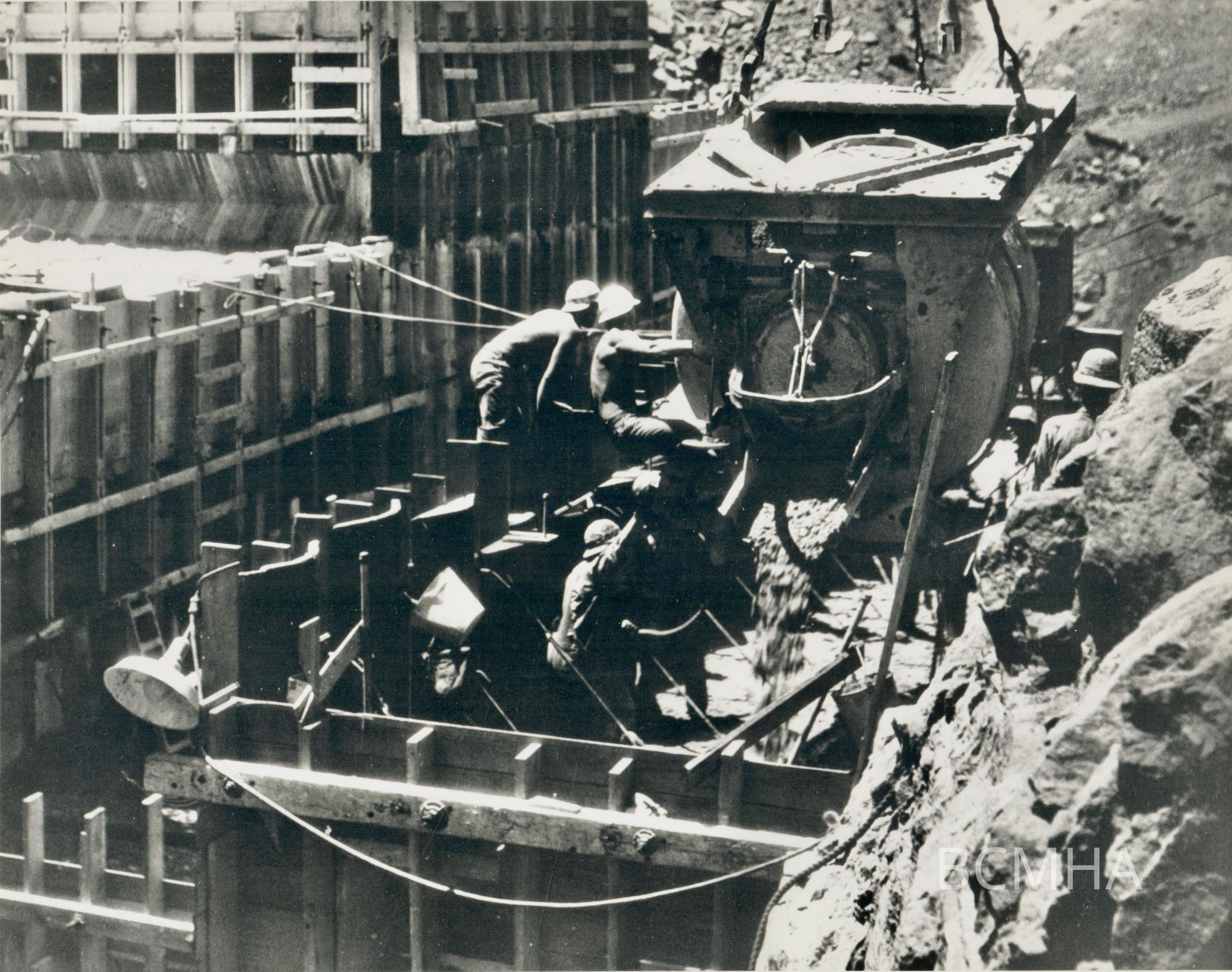 Hoover Dam construction: concrete placement: "11. A transit mixer placing Boulder Dam concrete."; Harold L. Ickes Collection; Reproduction from the Collections of the Library of CongressCollection