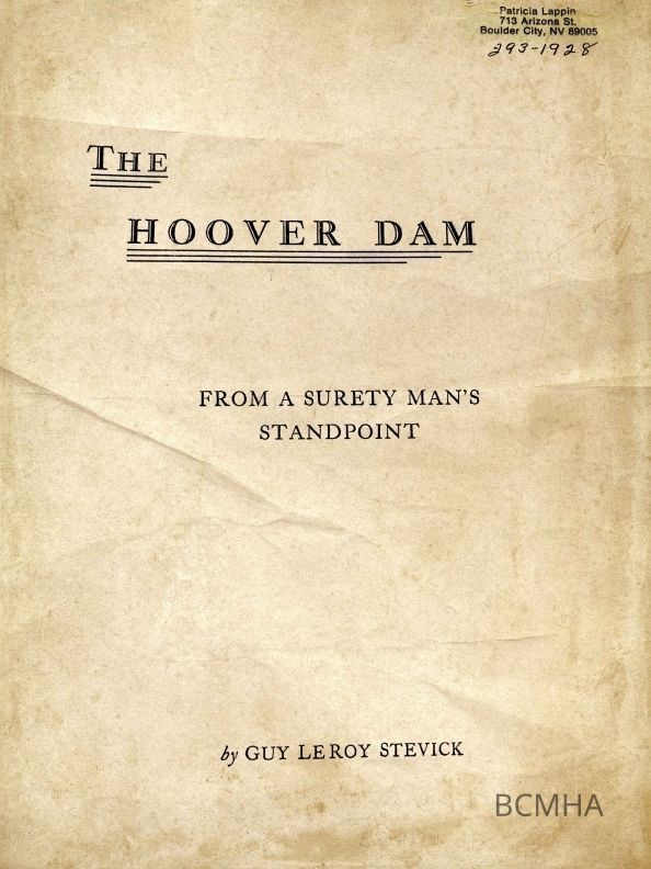 This file contains: photocopies of articles; copy of "The Hoover Dam, from a surety man's standpoint"Cataloged By