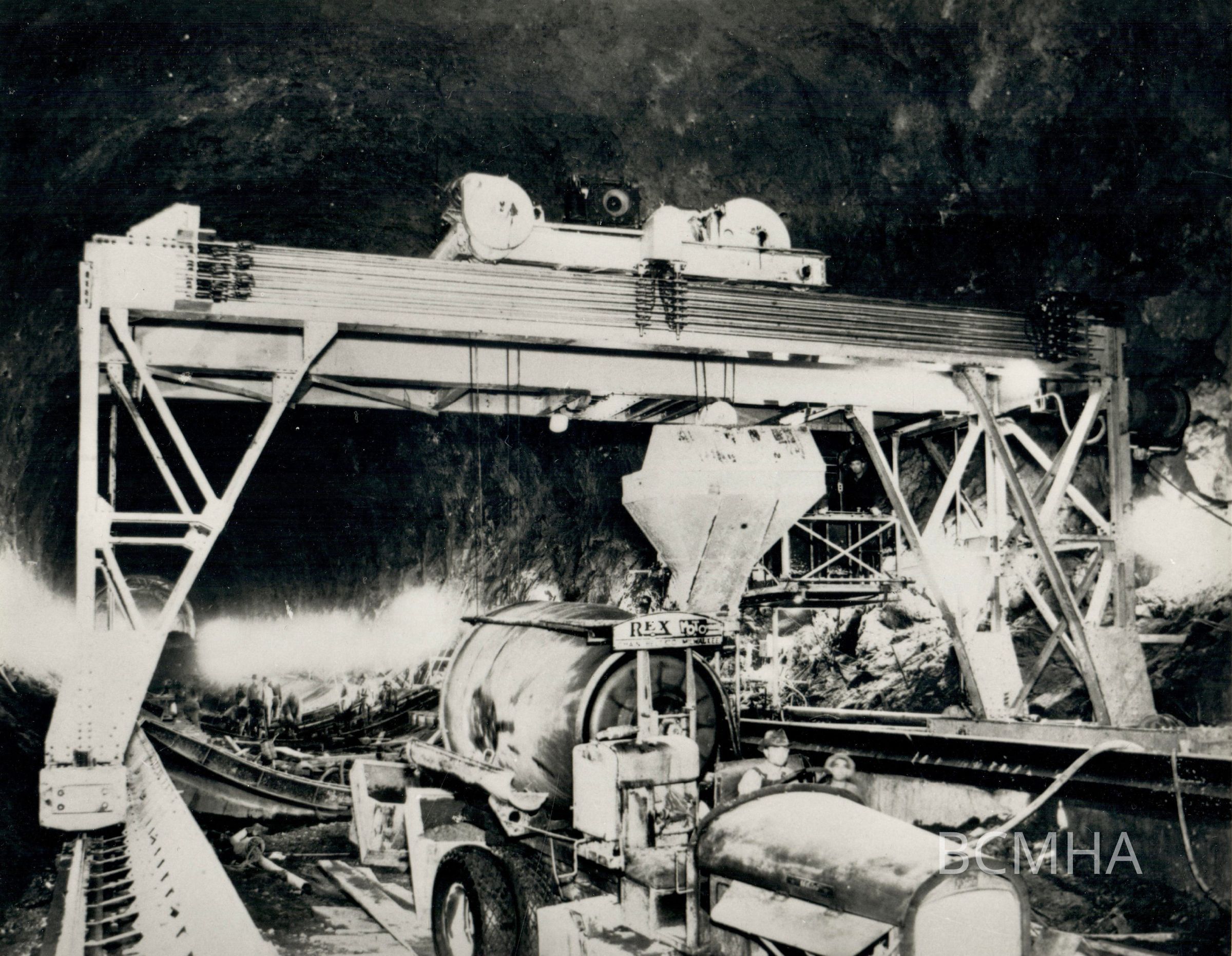 Hoover Dam construction: diversion tunnels: "Four-cubic-yard agitators dumping into 2-cubic-yard buckets." 3/23/32; 0120 0023 folder 120 Burrell C. Lawton Collection; UNLV Library - Special Collections Copy Negative; USBR photoCollection