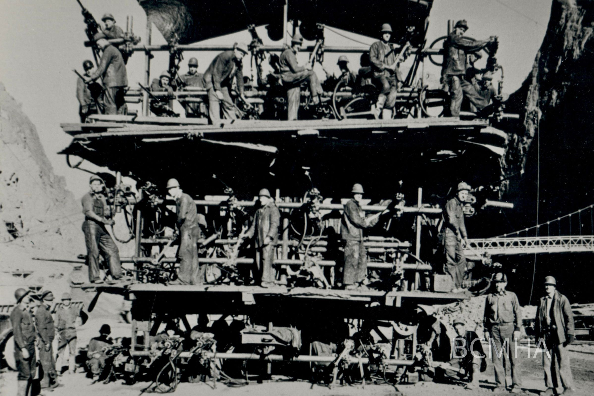 Hoover Dam construction: diversion tunnels: drilling jumbo, 1931Collection