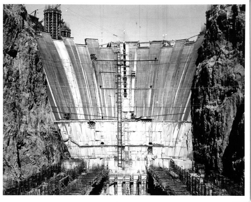 Hoover Dam construction: general view, Oct. 2, 1934 tops of the concrete forms are at elevation 1055Entry/Object ID