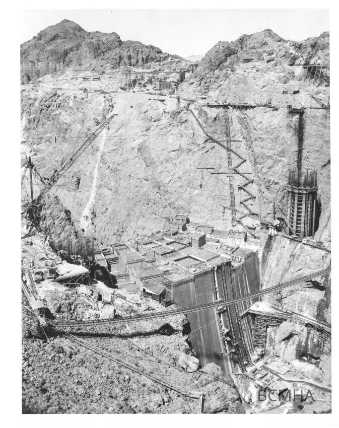 Hoover Dam construction: general view: upstream face, ca. 1934Entry/Object ID