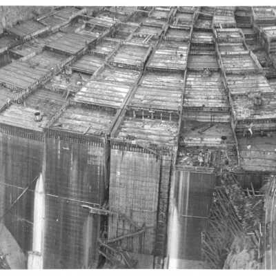 View of upstream face of Hoover Dam during construction; John McCreary, photographer; USBR negative p45-0300-01630Made/Created