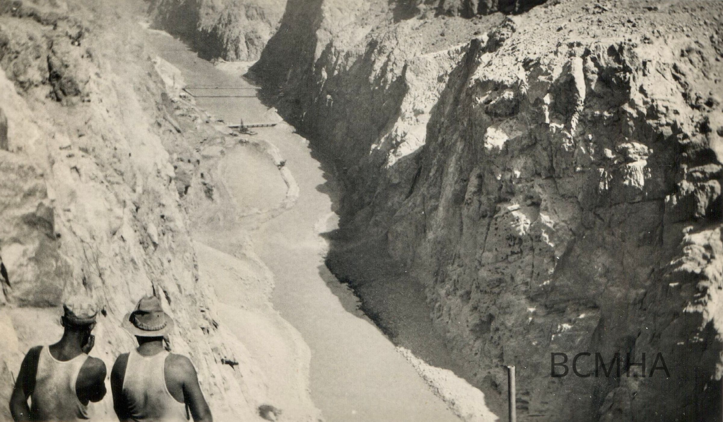 Hoover Dam construction: general views, c. 1932-1935: "View of Colorado River and construction on canyon floor"Collection