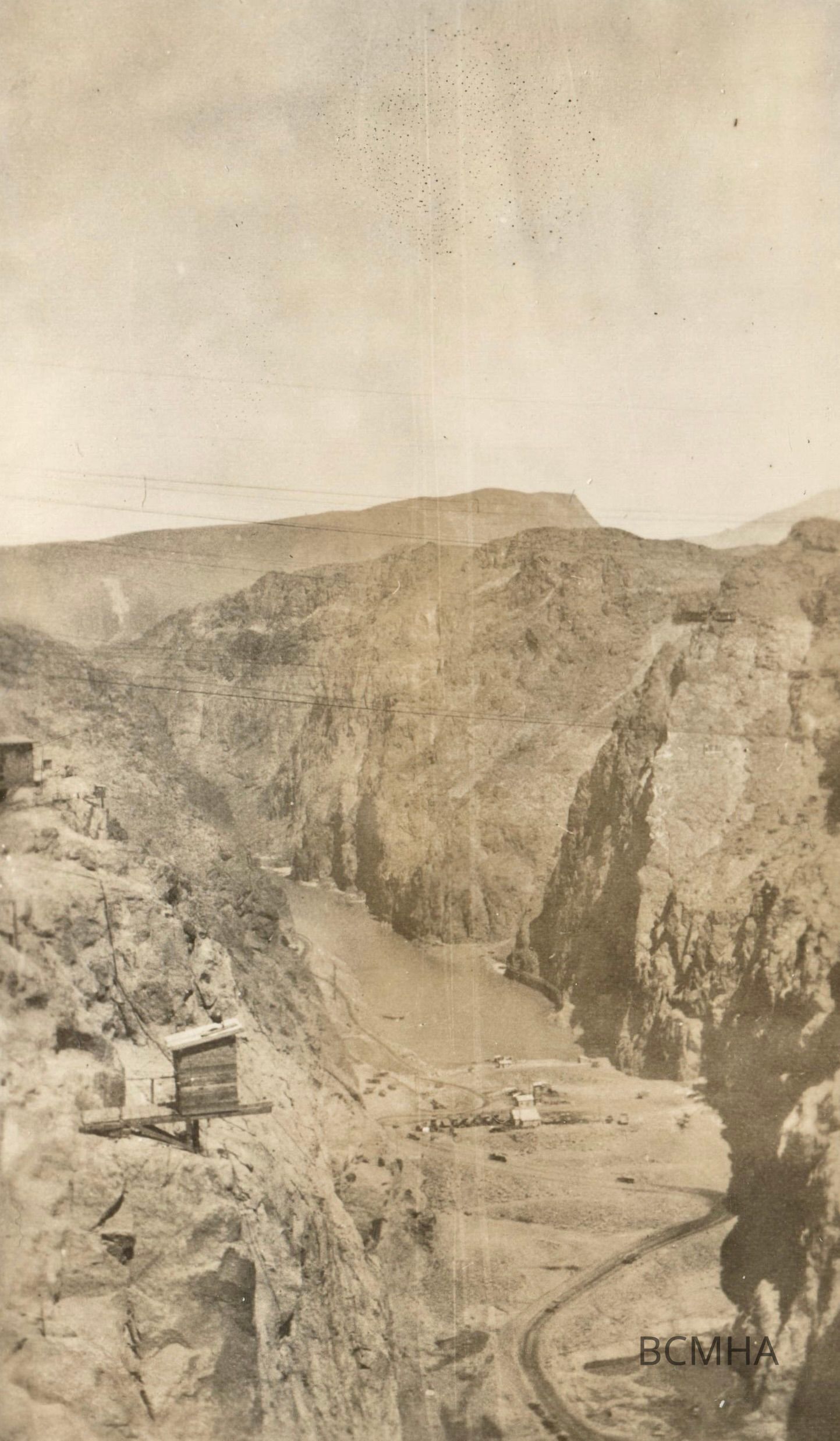 Hoover Dam construction: general views, c. 1932-1935: "View of construction from top of canyon looking down to river and canyon floor"Collection