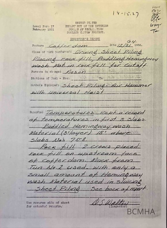 Hoover Dam - Construction: Inspection Reports (1931-35)Entry/Object ID
