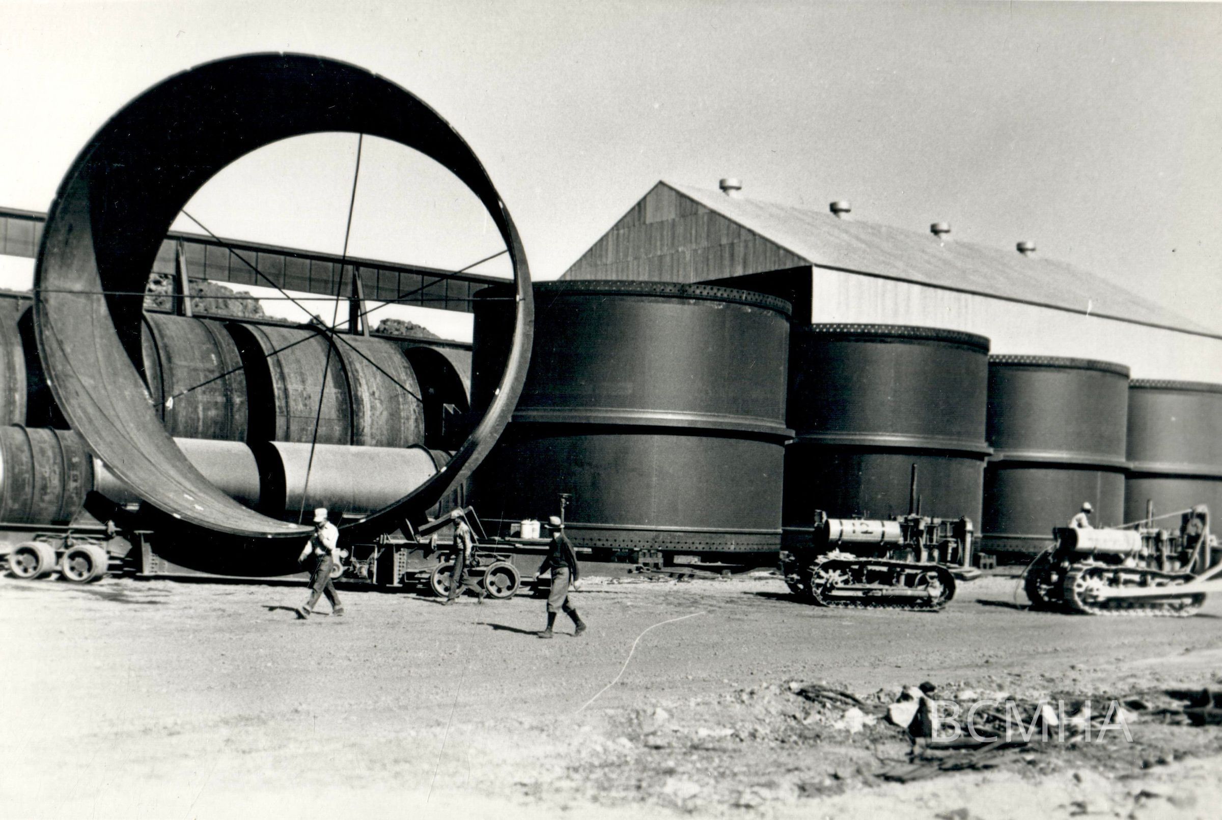 Hoover Dam - construction: penstocks: Babcock and Wilcox Co. steel fabricating plant near the Hoover damsite where the penstocks were manufactured, c. 1934 [TF]Collection