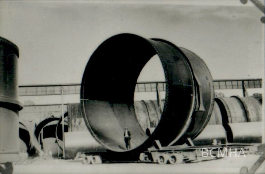 Hoover Dam - construction: penstocks: "Man posed in a 30-foot penstock"; Van Jensen photoCollection