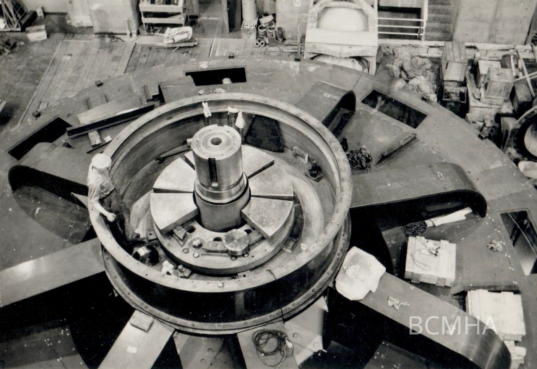 Hoover Dam construction: power generation: assembling the stator, c. 1935-37Collection