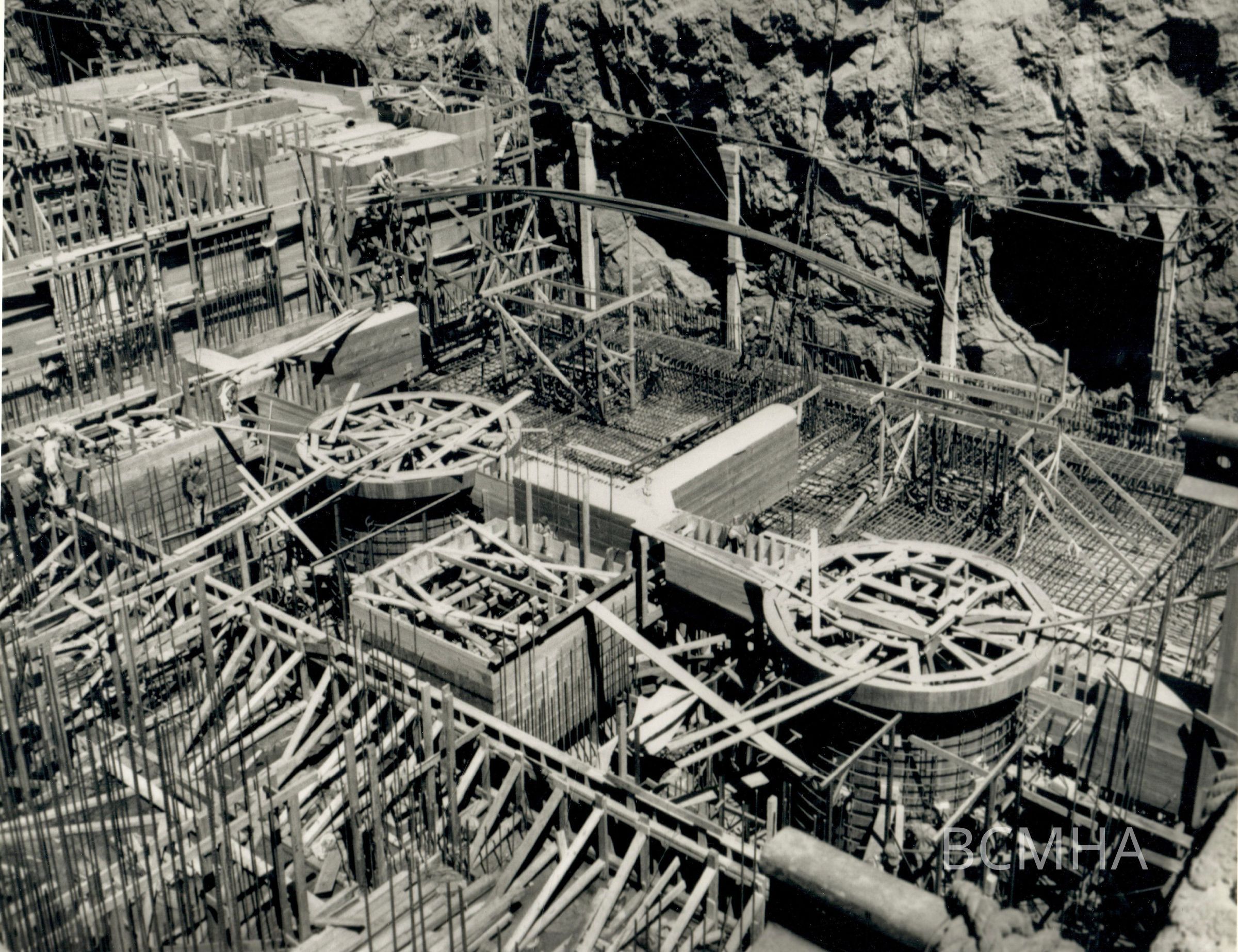 Hoover Dam construction: power generation: "Form work in units 8 and 9, Arizona Power-house." 6-14-34; W. A. Bechtel Collection Photo #2720 - Volume Three; Roll 37 - Photo No. 4 Copy Negative - Bureau of ReclamationCollection