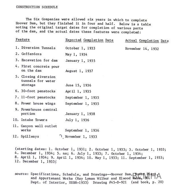 Hoover Dam - Construction: SchedulesEntry/Object ID