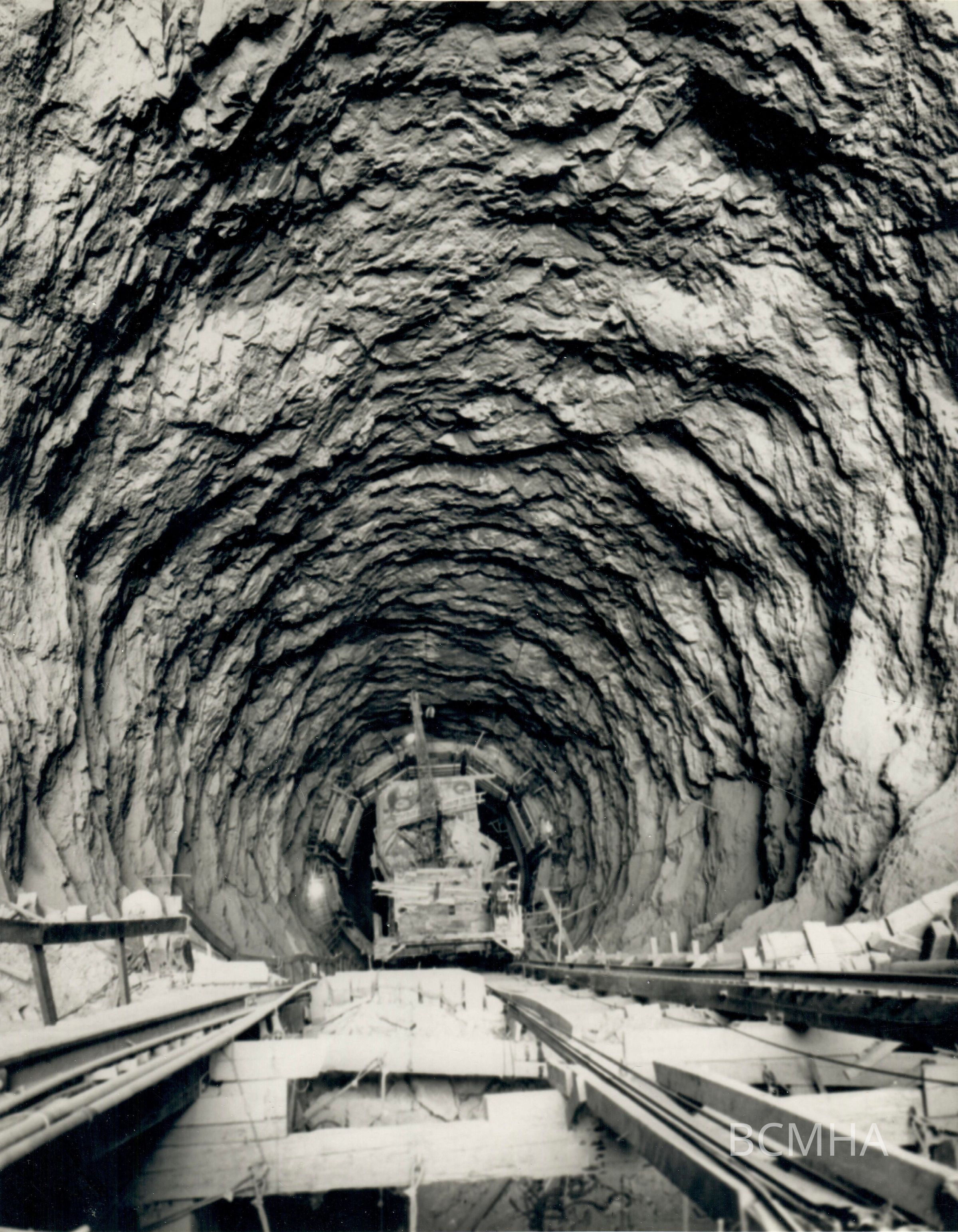 Hoover Dam construction: Spillways [Nevada]: "Concreting equipment in No. 1 inclined spillway tunnel." 10-7-33; W. A. Bechtel Collection Photo #2386 - Volume Three; Roll 32 - Photo No. 7 Copy Negative - Bureau of ReclamationCollection