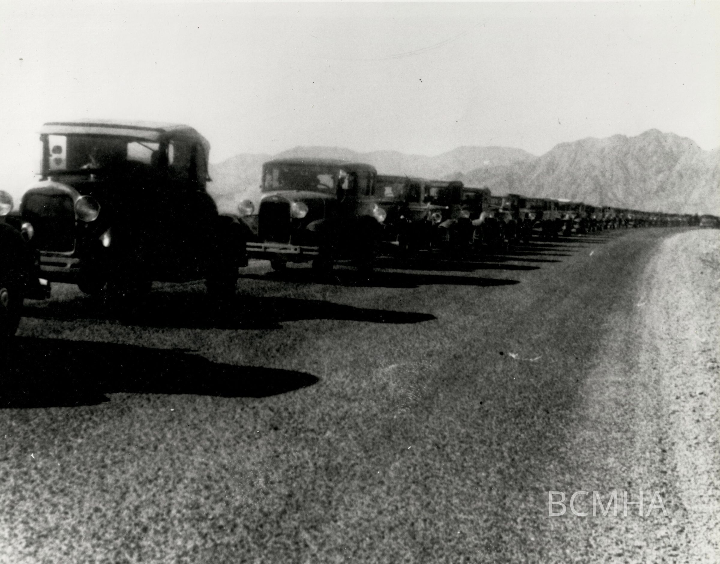 Hoover Dam construction: tourism: A caravan of over 500 automobiles entering Boulder City 1932Entry/Object ID