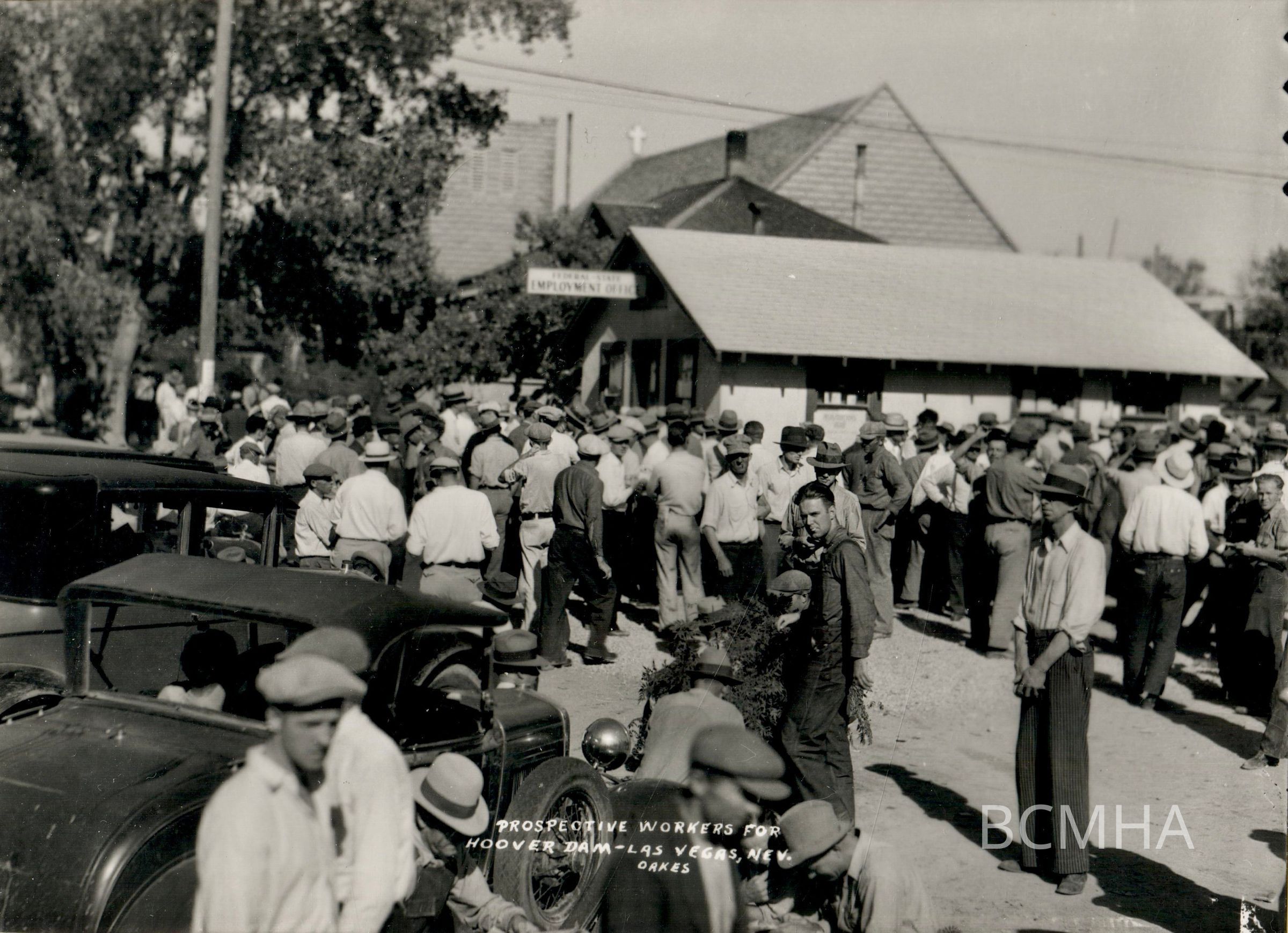 Hoover Dam construction: workers: employment office in Las Vegas, c. 1931-32; see Las Vegas Evening Review-Journal, Friday, 9/11/31, pp. 1 and 2; Oakes, photographer; UNLS - Manis Collection 0100:2206Collection