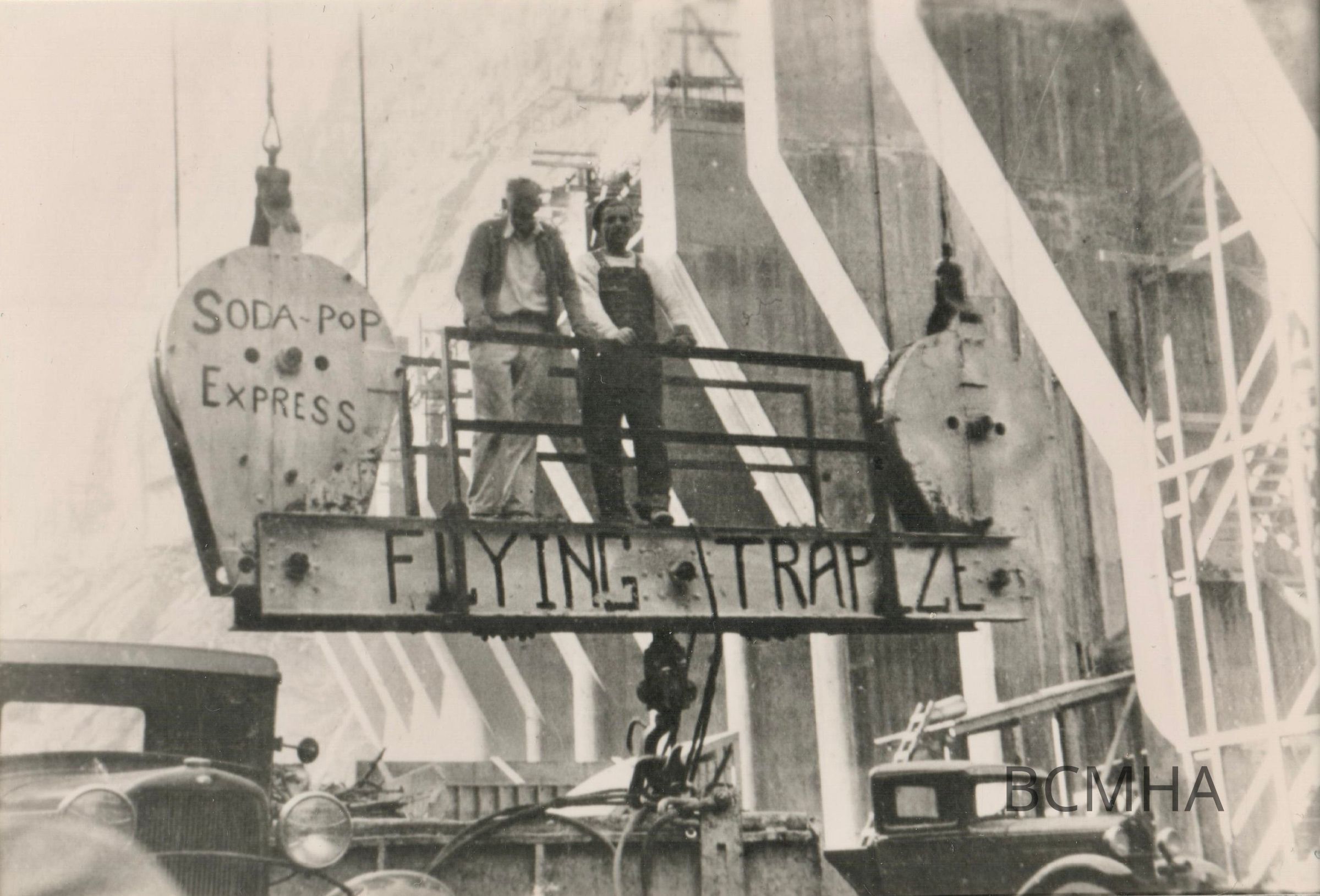 Hoover Dam - construction: workers, c. 1933-34; "Soda Pop Express/Flying Trapeze"; Nevada State Museum and Historical Association photo no. 856Collection