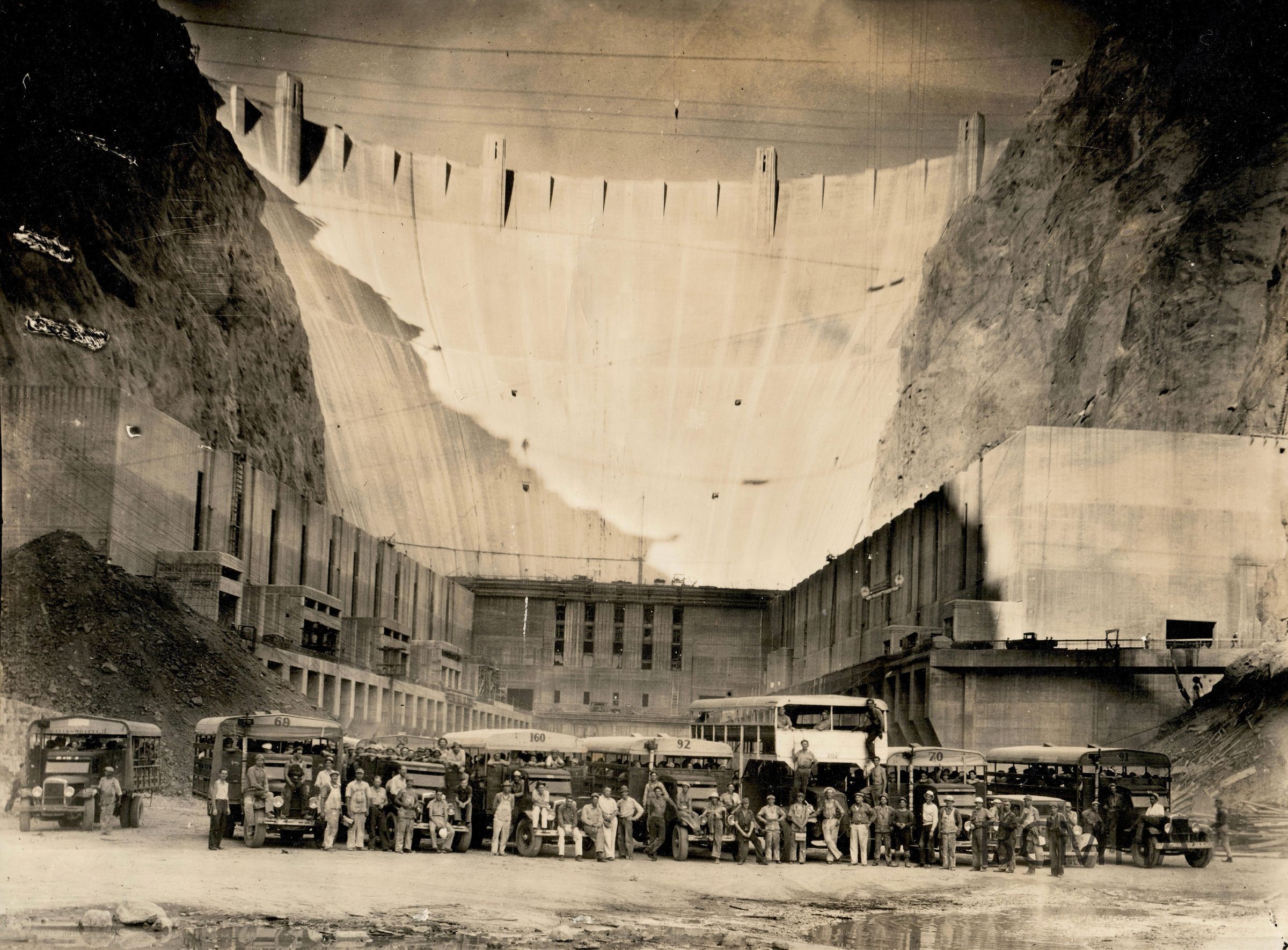 Hoover Dam construction: workers: transportation 1935Entry/Object ID