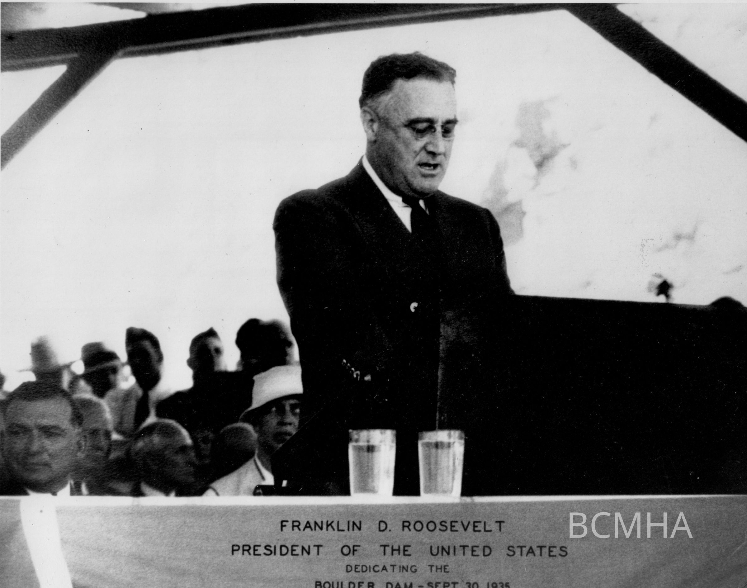 Hoover Dam - dedication, September 30, 1935; President Franklin Roosevelt; Walter J. Lubkin, photographer; BCL - William A. Bechtel album 3, photo no. 3450-Volume Three. Roll 45 - Photo No. 2; Copy Negative - Bureau of ReclamationCollection