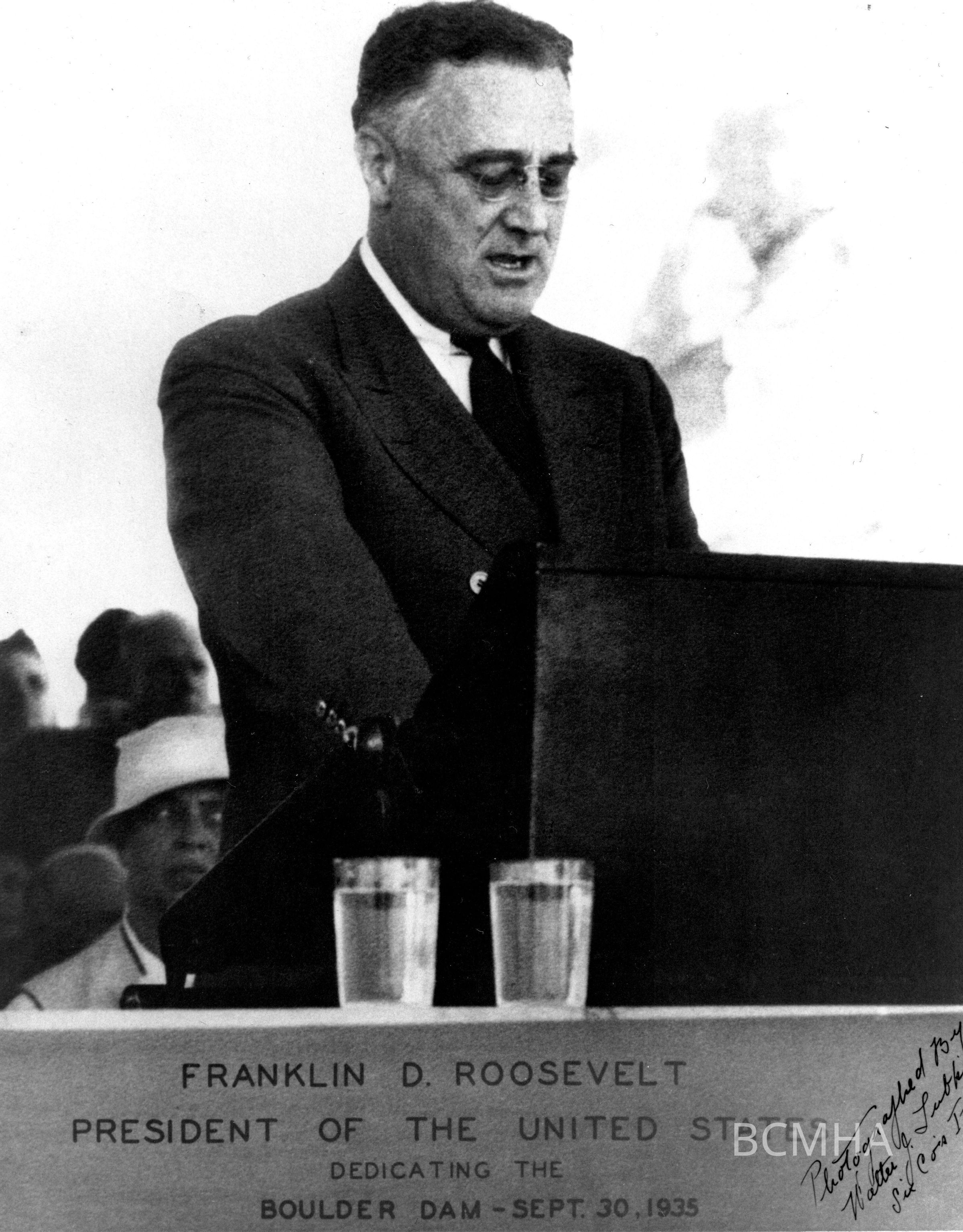 Hoover Dam dedication, September 30, 1935; President Franklin Roosevelt; UNLV Library Special Collections; Copy Negative - Bureau of Reclamation Photo No. 17; Walter J. Lubkin, photographerCollection