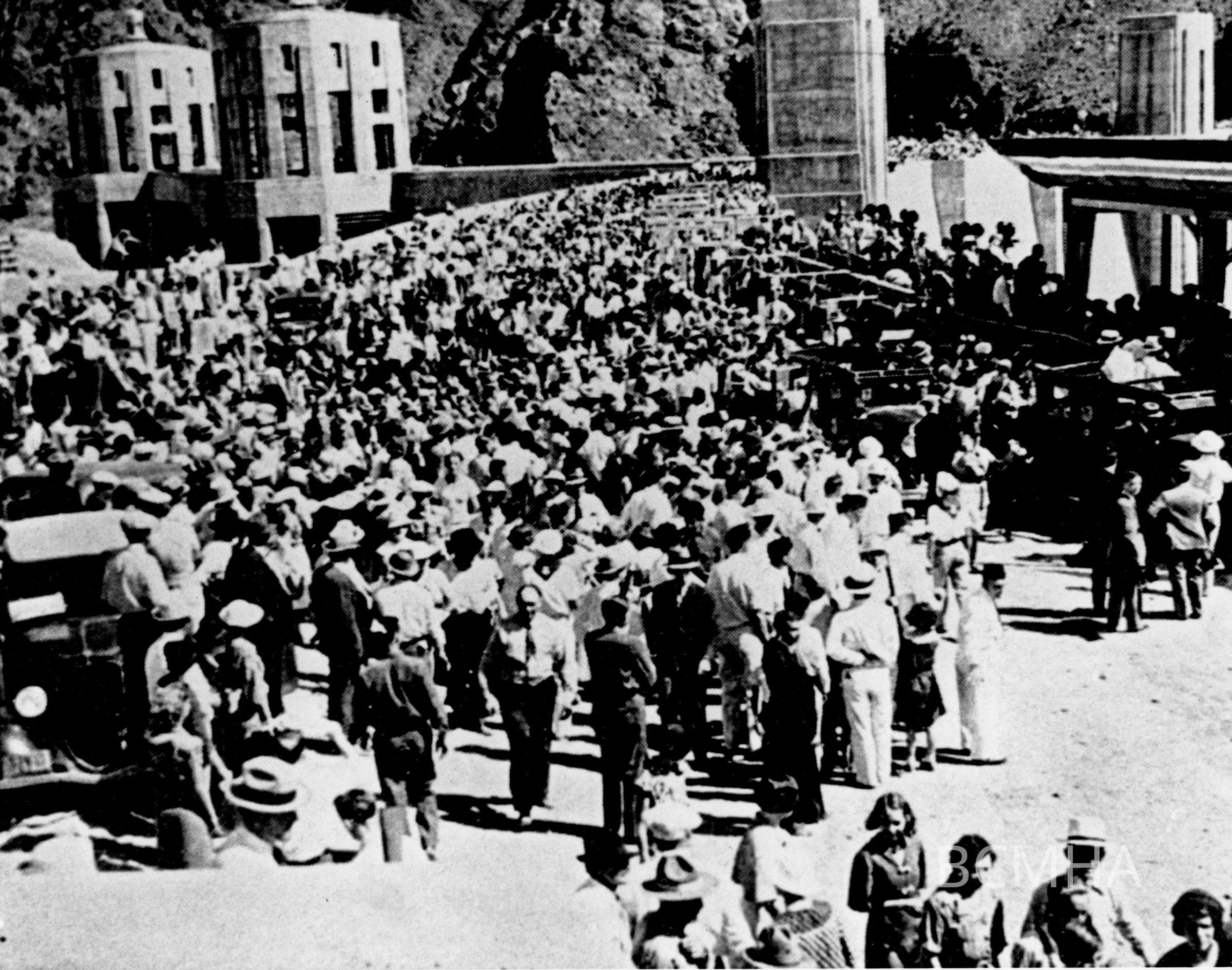 Hoover Dam dedication, September 30, 1935: Part of the crowd of 20 thousand who attended the dedication ceremonies at Boulder Dam.; Copy of Negative McBride Collection; Bureau of Reclamation photoCollection