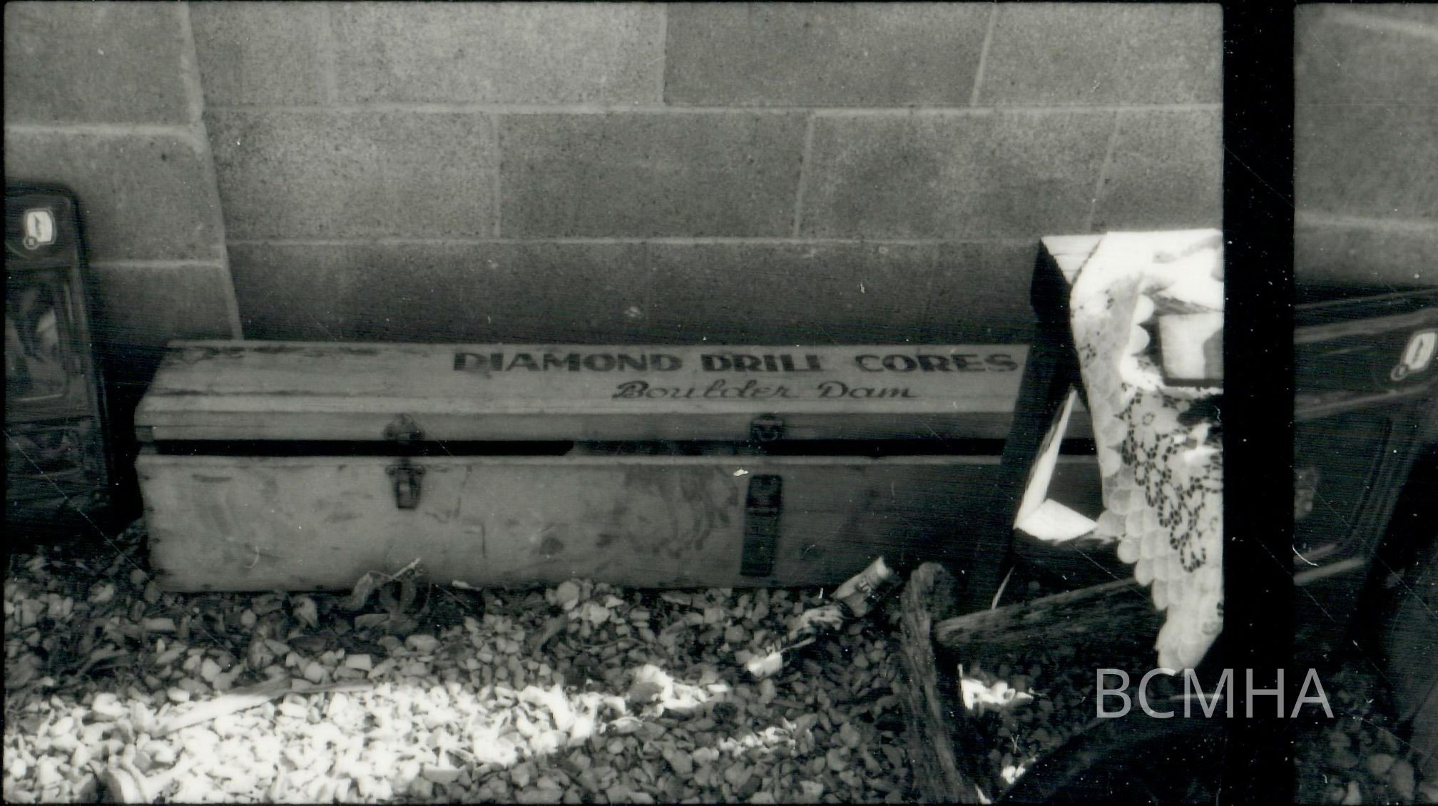 Hoover Dam diamond drilled core samples from Black Canyon, 1930; Dennis McBride, photographer; photo taken 1985; property of Virginia "Teddy" Fenton, since lost [negative]Collection
