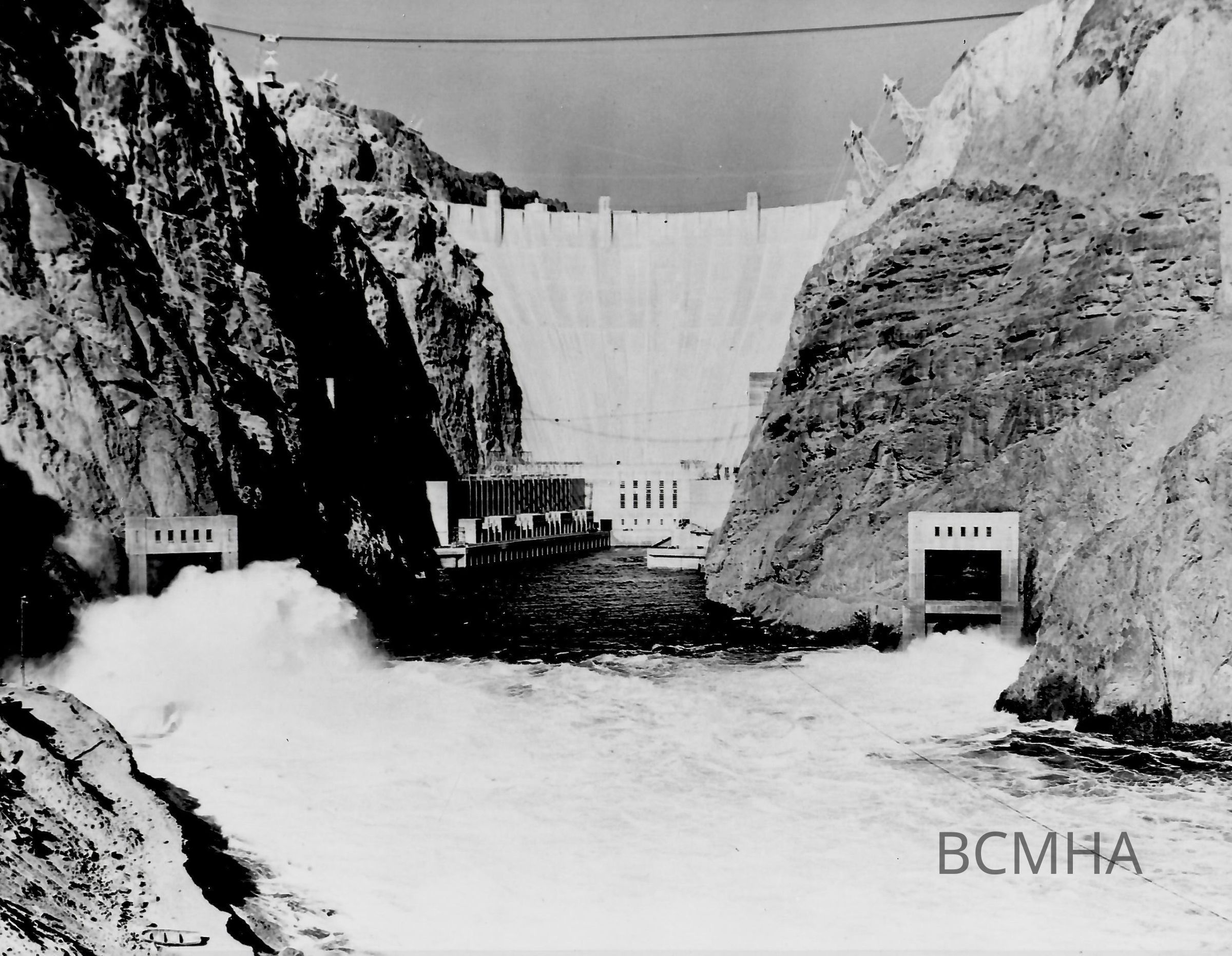 Hoover Dam - general view, c. late 1930s-40s: Hoover Dam, downstream face, c. 1941 [F loose] [USBR photo Copy Negative from Outside Collection]Collection