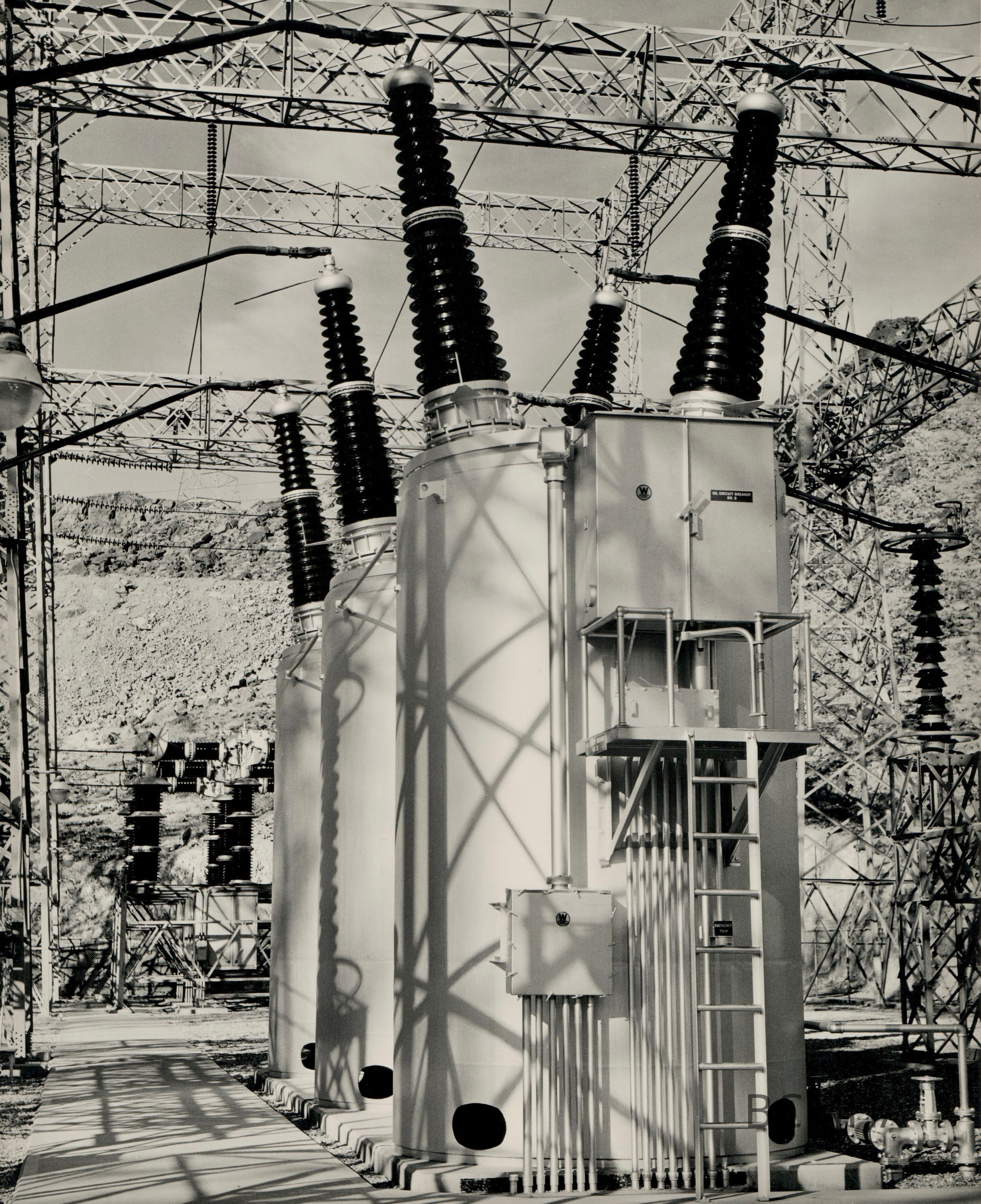 Hoover Dam power generation: Switchyard and Transformers, c. 1940s-50s; USBR photo/BCP 6204Collection