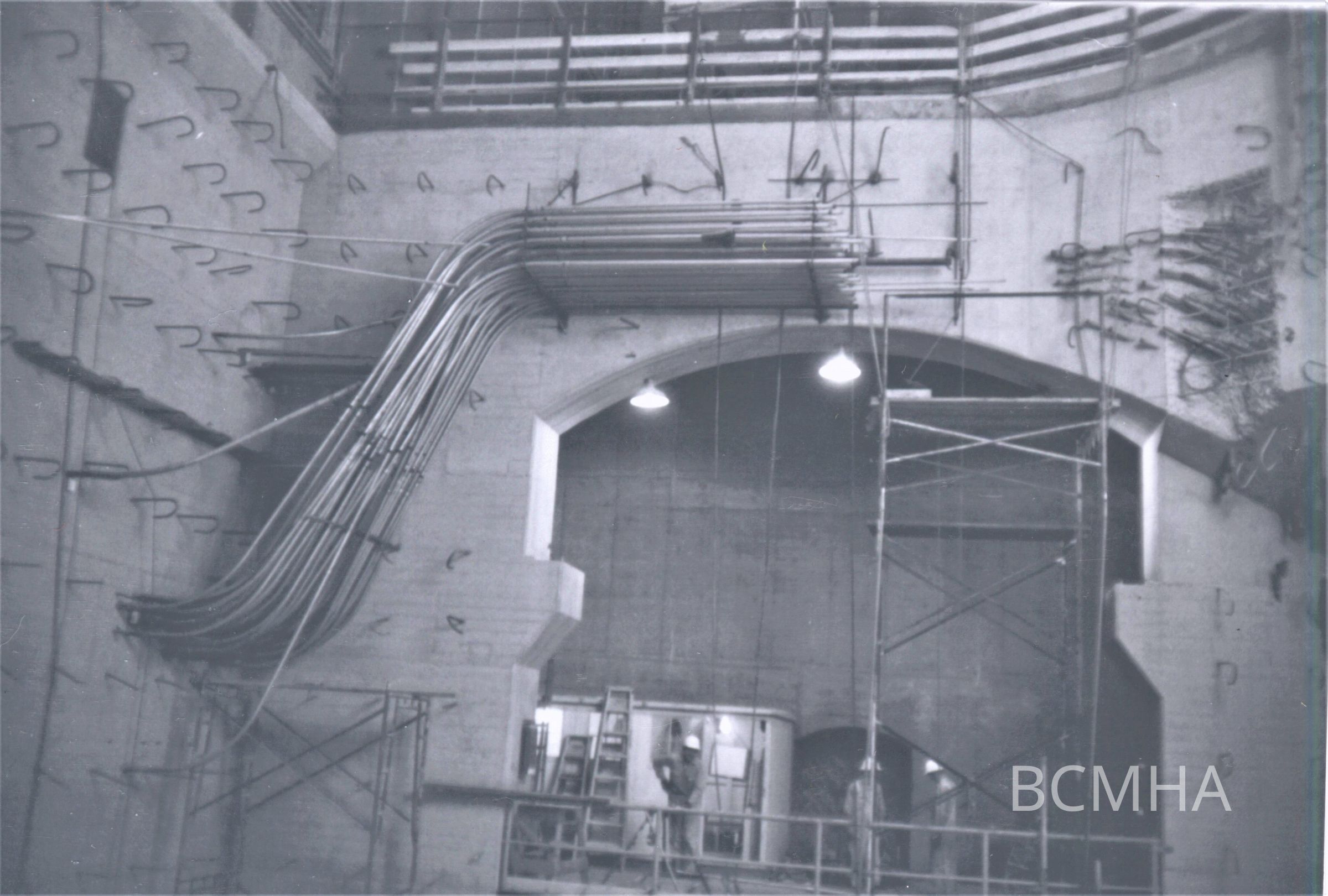 Hoover Dam- power: installing generator N-8, the last generator installed at Hoover Dam, 1960-61; April 1961; unidentified persons shownCollection