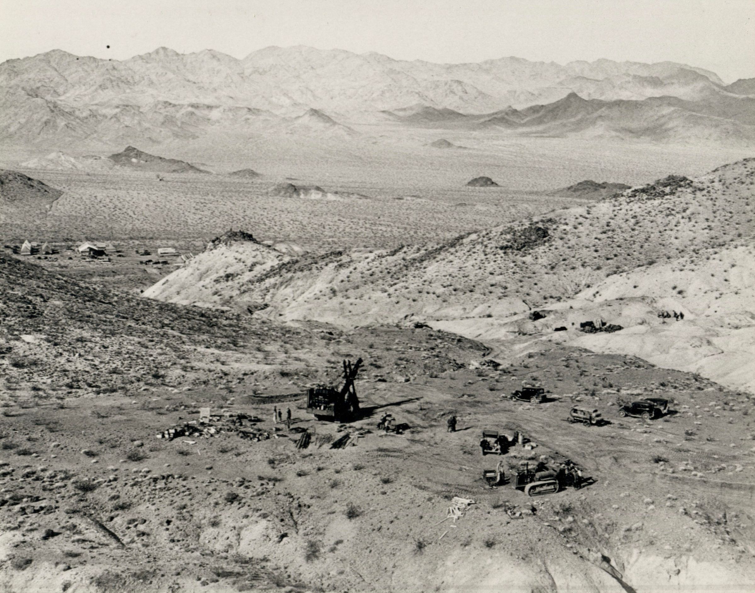 Hoover Dam roads: U. S. 93 [aka Black Canyon Highway]: "Graphic Views of Hoover Dam R. G. LeTourneau assembling his equipment in preparation for the construction of the Government Highway (Black Canyon Highway) from Boulder City to the damsite." Circa March 1931; Photo #37 by W. A. Davis Roll 9 - Photo No. 3 Copy Negative - Bureau of ReclamationCollection