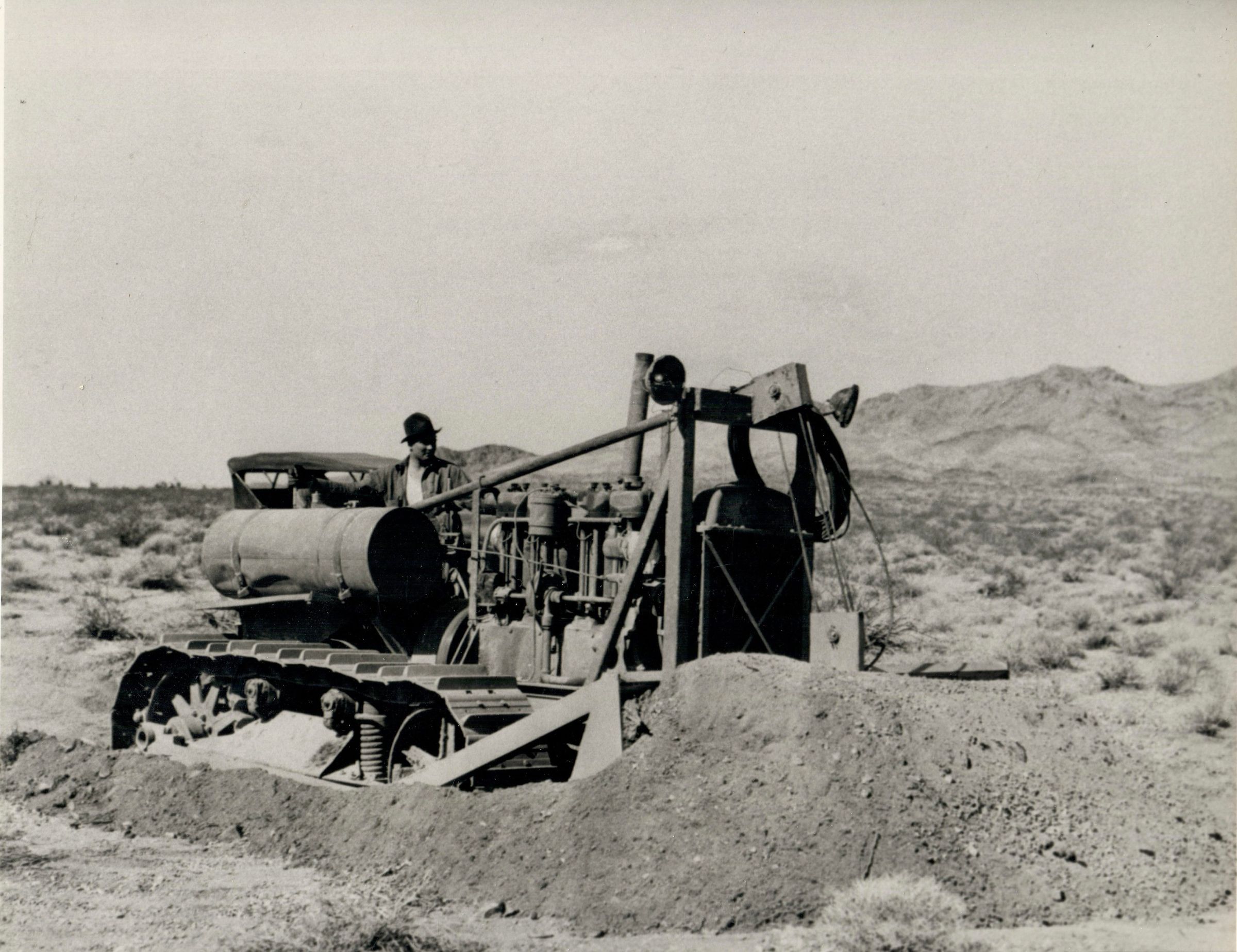 Hoover Dam - roads: U. S. 93 [aka Black Canyon Highway]: "Graphic Views of Hoover Dam Caterpillars were used by R. G. LeTourneau in grading the road from Boulder City to the damsite." Circa May, June 1931; Photo #41 by W. A. Davis; Roll 9 - Photo No. 7 Copy Negative - Bureau of ReclamationCollection