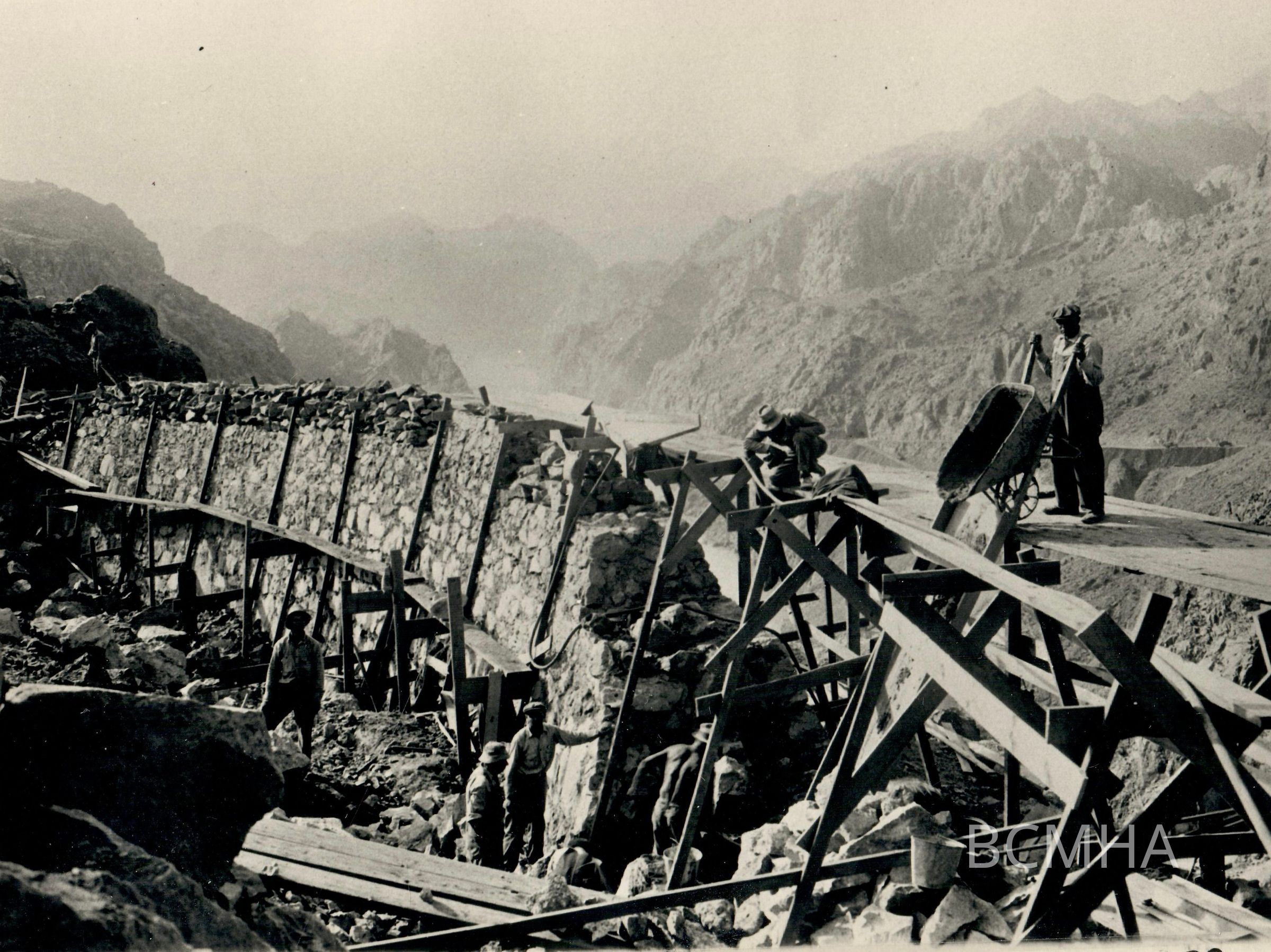 Hoover Dam roads: U. S. 93 [aka Black Canyon Highway]: "Retaining walls under construction on the Nevada side of Black Canyon, September 26, 1931; crew under the supervision of "Big George" BackleyCollection