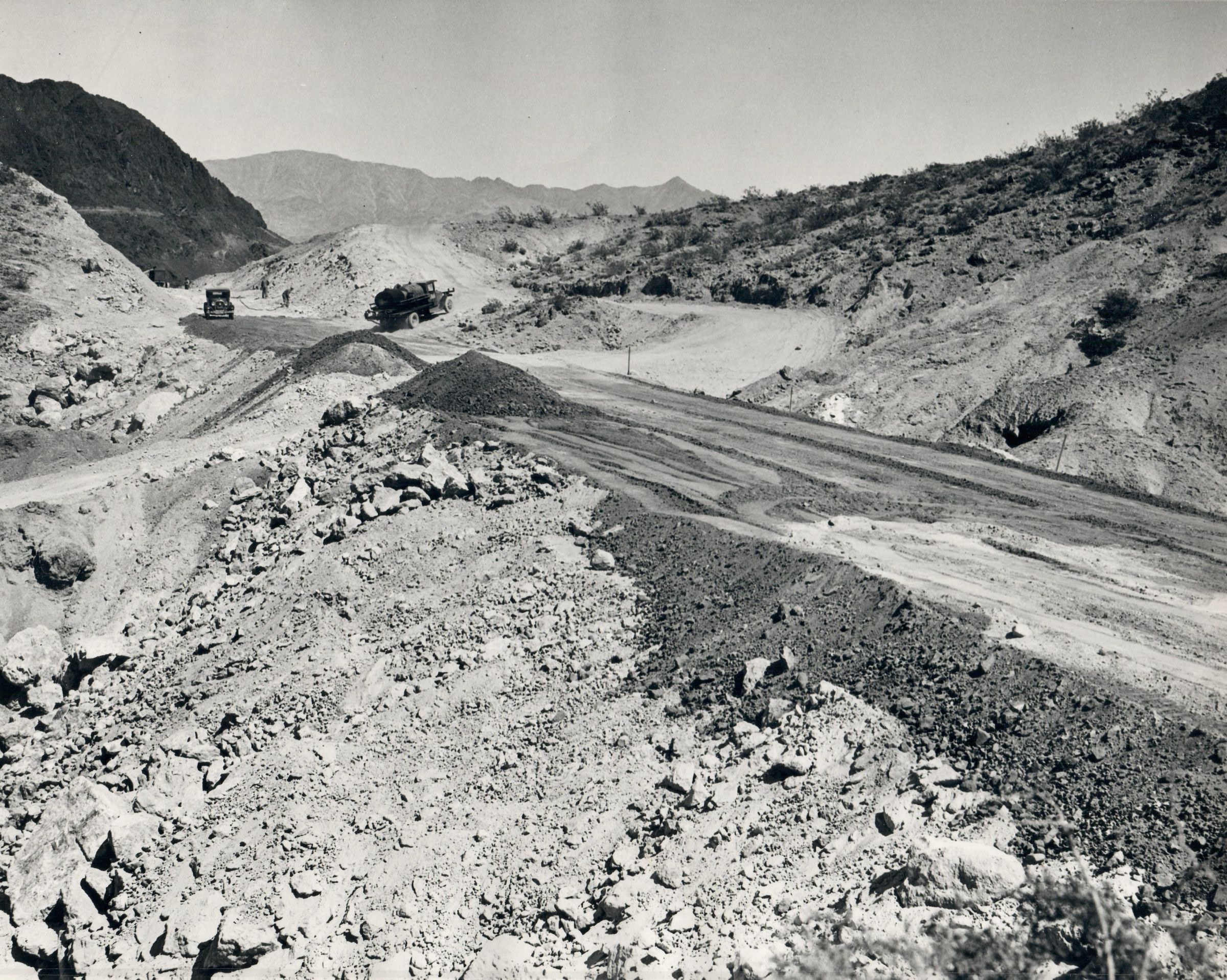 Hoover Dam roads: U.S. 93 [aka Black Canyon Highway] under construction, April 10, 1931; Union Pacific Railroad Photo - Neg. HD-291Collection