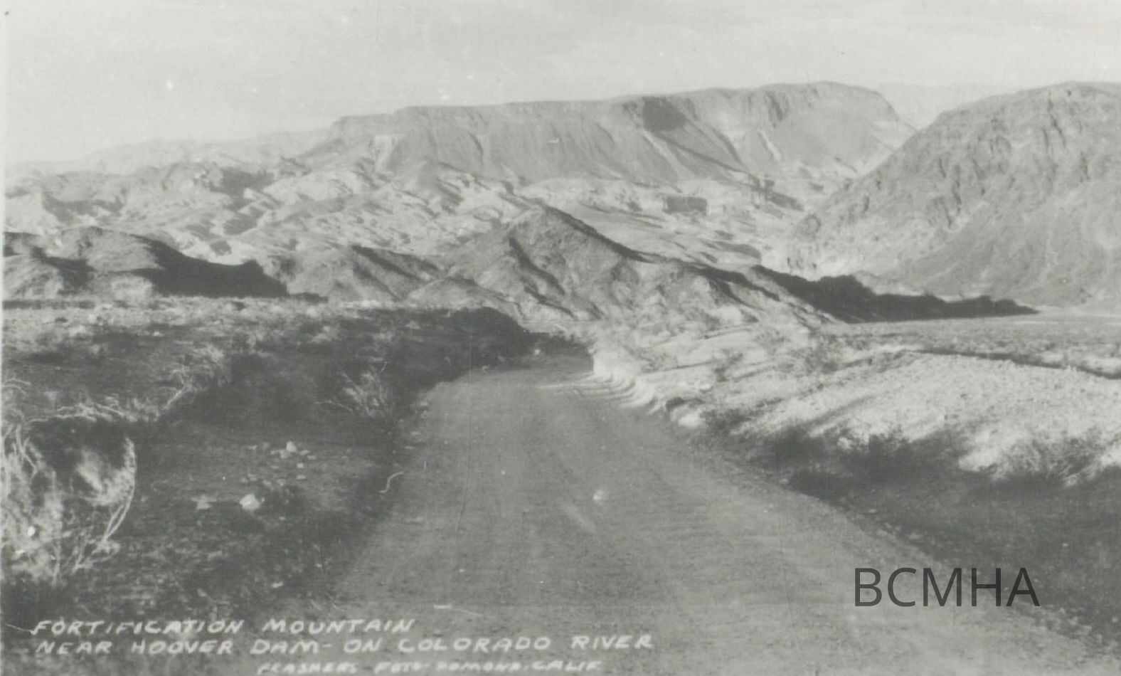 Hoover Dam roads: U.S. 93 through Hemenway Valley [aka Black Canyon Highway]: Fortification Mountain near Hoover Dam - on Colorado River, c. 1930-31; Frashers Fotos/Pamona, Calif. [neg]Collection