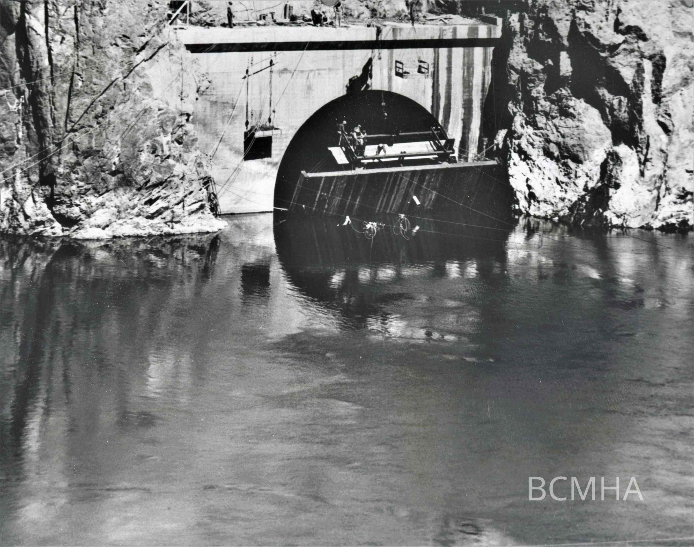 Hoover Dam spillways: Arizona repair: "Raising bulkhead gate into final position," 1942; USBR photo no. 5684; William S. "Bill" Russell, photographerCollection