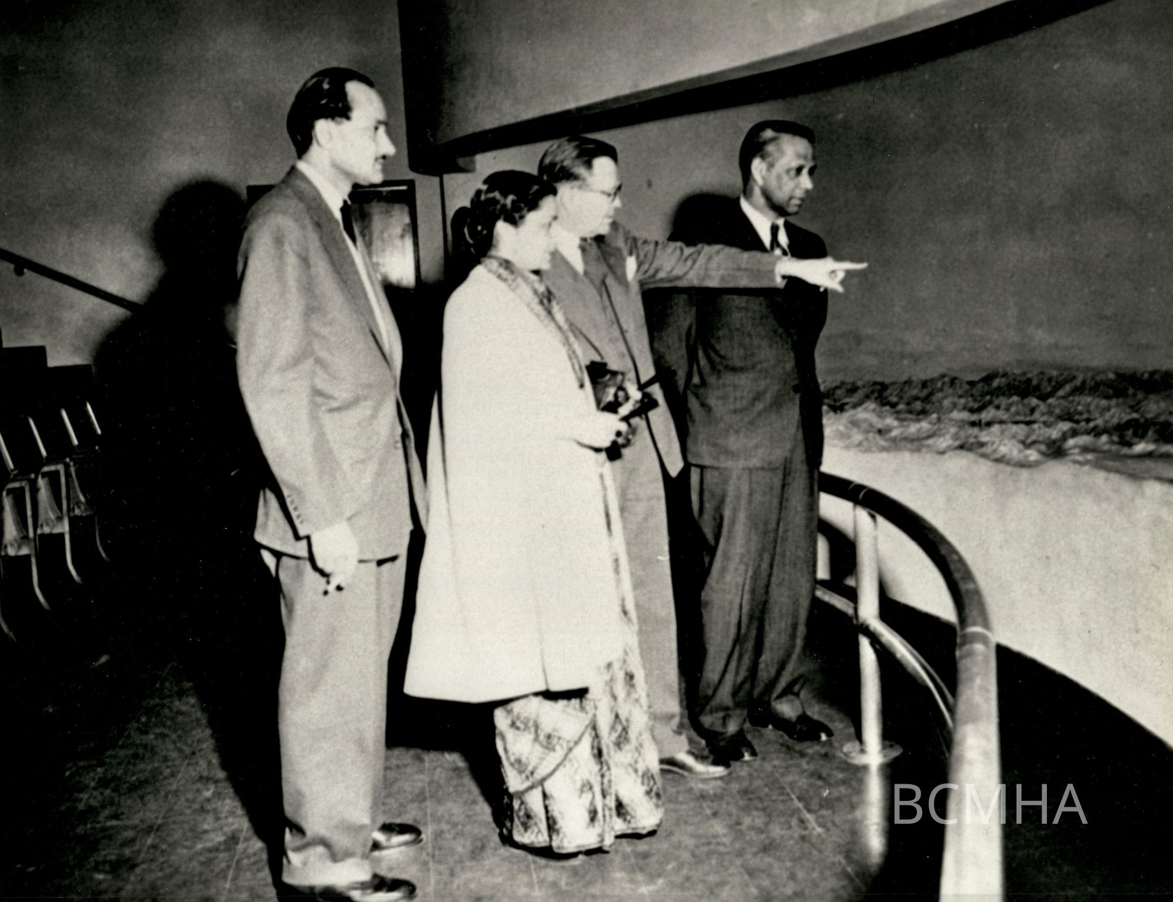 Hoover Dam tourism: Prince and Princess J. M. Shrinagesh of Jahore, India at the Visitor's Center, Boulder Dam. Monday, February 24, 1947; USBR photoCollection