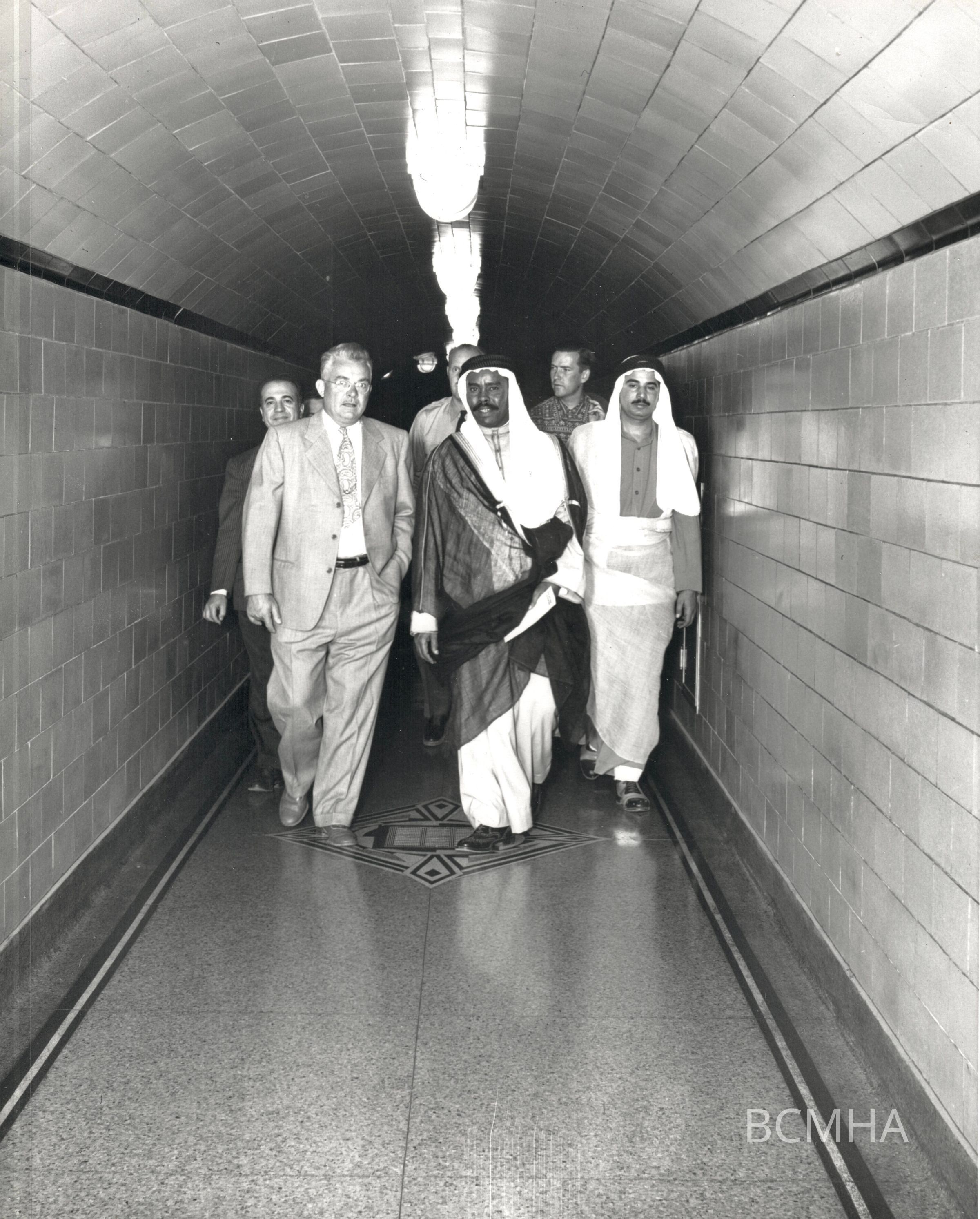 Hoover Dam - tourism: Prince Fahad, the Emir of Kuwait, Arabia [center]; Lloyd Hudlow [left with tie], October 20, 1950; Bureau of Reclamation/BCP photo #8029Collection
