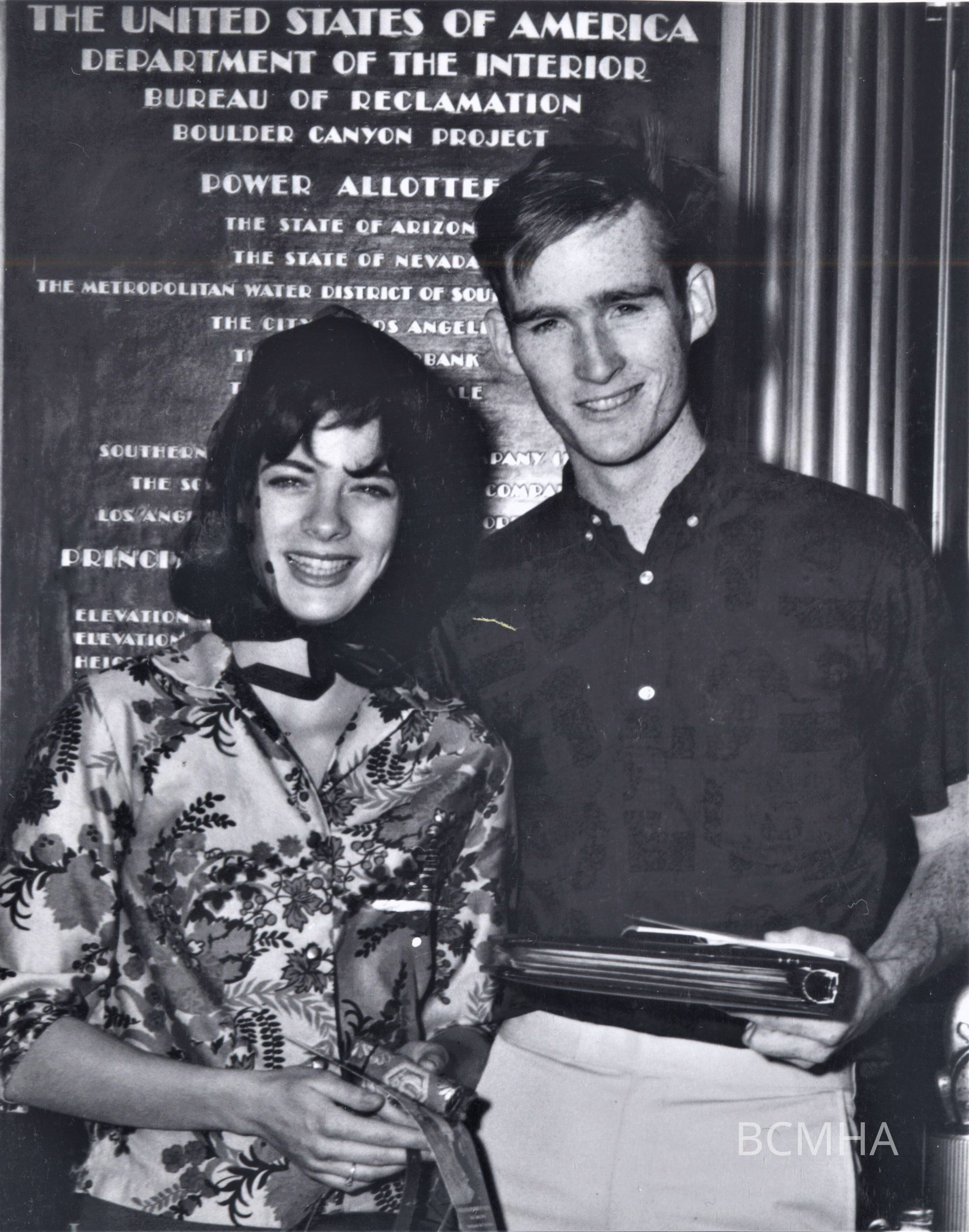 Hoover Dam tourism: 9 millionth tourists: Mr. and Mrs. John Sheridan, October 13, 1962; USBR photo P45-301-11132-1: Mr. and Mrs. John SheridanCollection