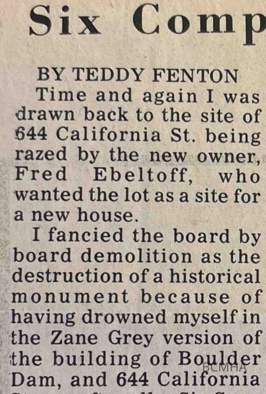 Housing - Boulder City: California Avenue: 644Entry/Object ID