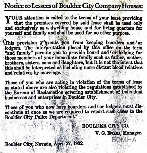 Housing - Boulder City: Six Companies: Leasing Terms (1930s)Entry/Object ID