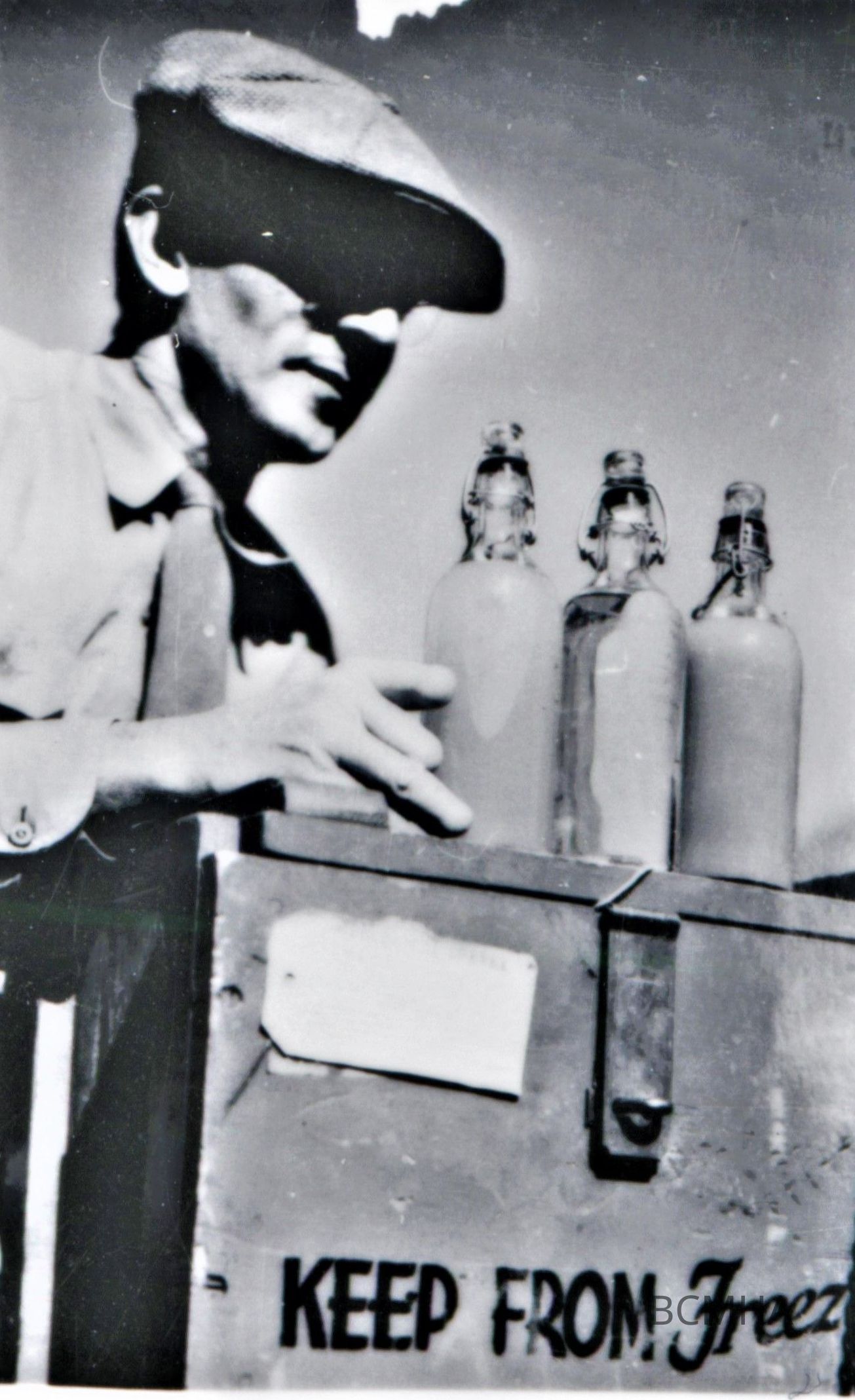 Lake Mead water sampling, March 11, 1941; "water samples are taken at various points on Lake Mead. The samples are stored in small bottles and taken to the Boulder Dam Laboratory for analysis.";