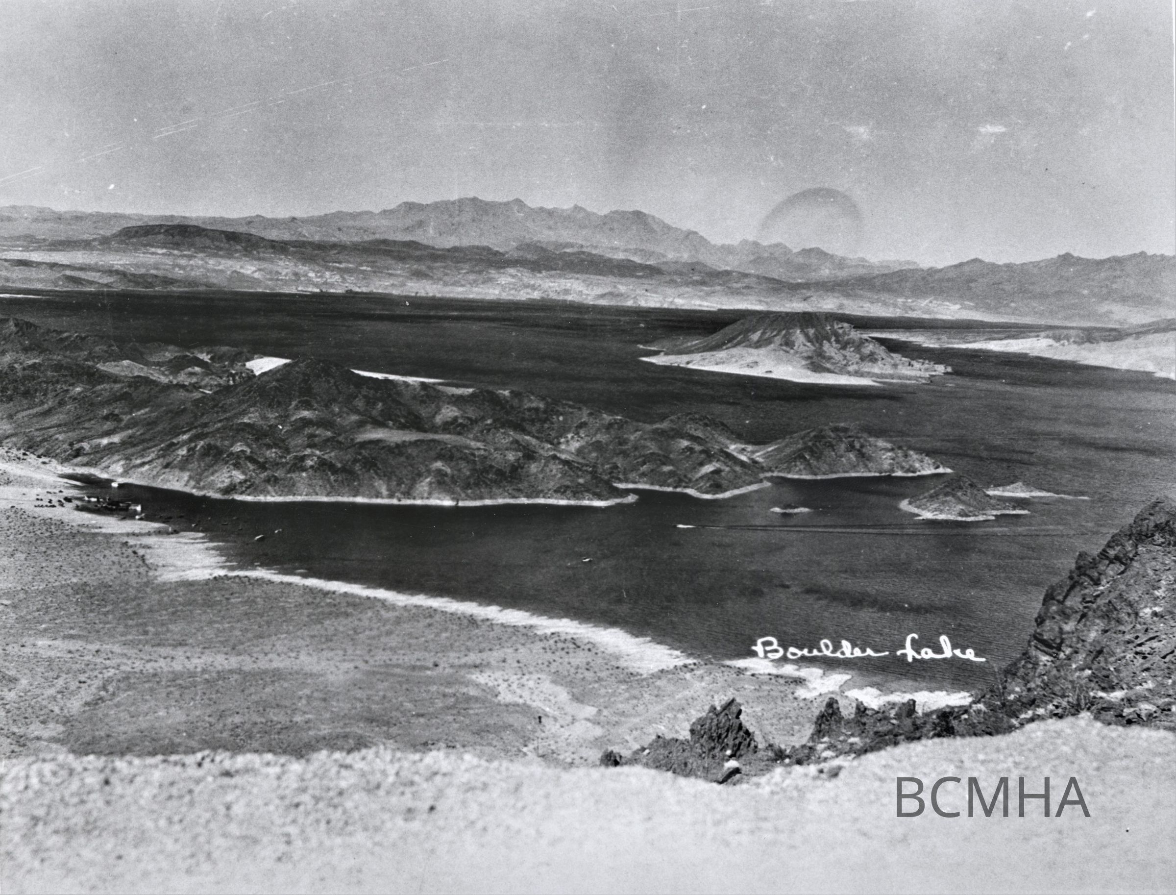 Lake Mead in early stages of filling. Sentinel Island right of center in photo. August 1935; USBR photo; Copy Negative from Outside CollectionCollection