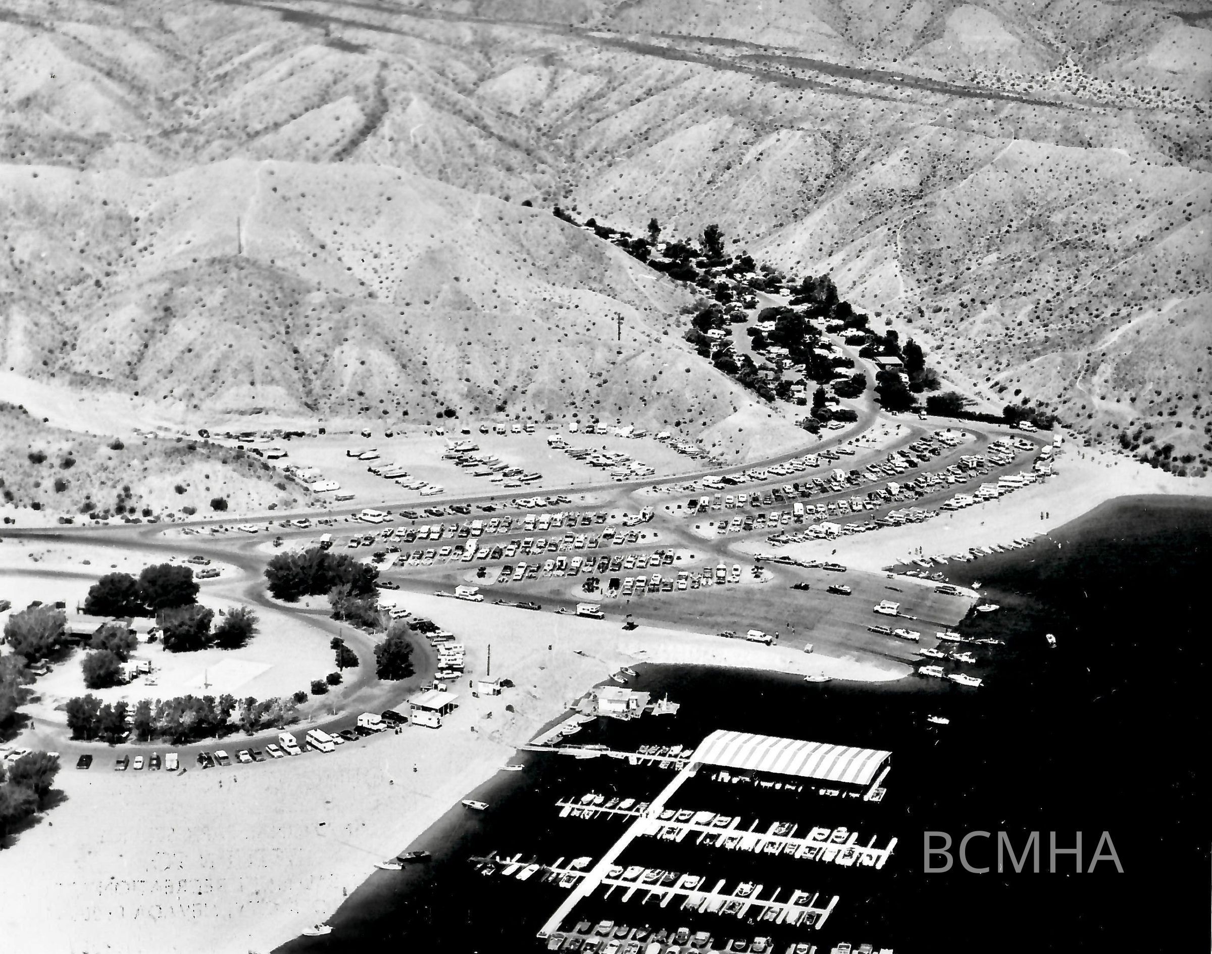 Lake Mojave - Cottonwood Cove [4/12/68 between 10:00-11:00 a. m. - "Filled to capacity and running over, 263 units are visible in this photo. This figures includes vehicles or boat trailers occupying a space (does not include dry storage area). The lower campground of 49 units was filled."]; National Park Service photoCollection