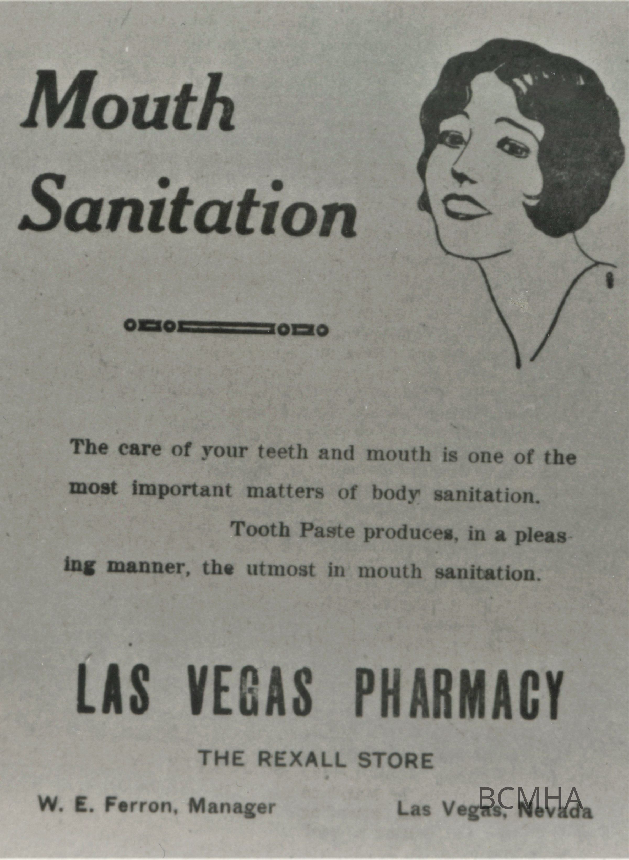 Las Vegas- Business Advertisement; Las Vegas Pharmacy ["Mouth Sanitation" April 3, 1926]Entry/Object ID