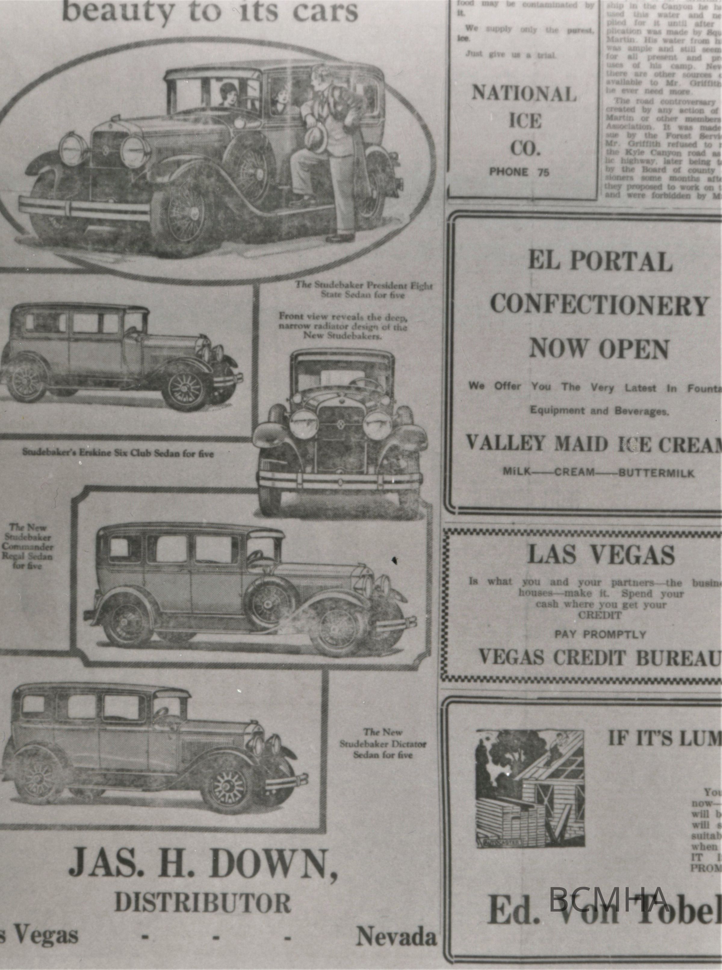 Las Vegas; Business Advertisement; Studebaker Agency; Las Vegas Age; July 10, 1928; p.4Collection