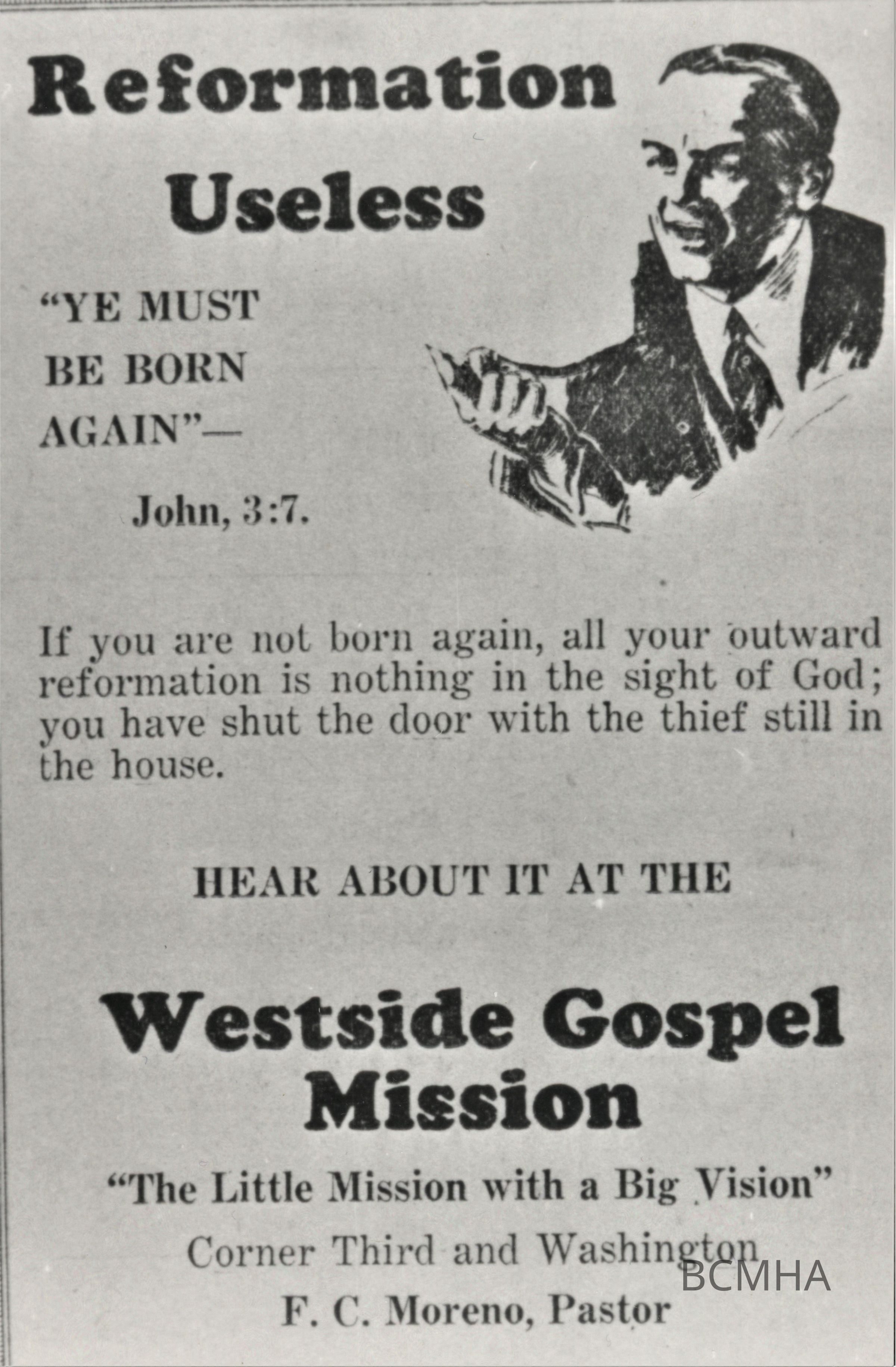 Las Vegas - Churches: West Side Gospel Mission: advertisement [from the Las Vegas Evening Review-Journal, January 15, 1932, p. 3]Collection