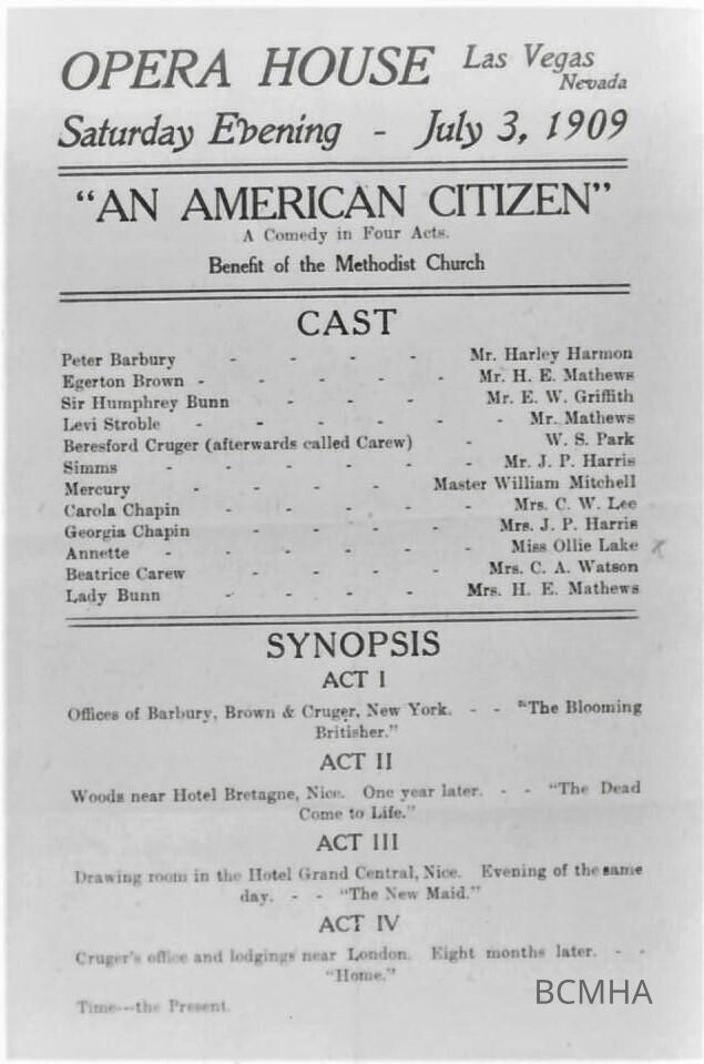 Las Vegas, NV. Program from the Opera House production of "An American Citizen" on July. 3, 1909Entry/Object ID