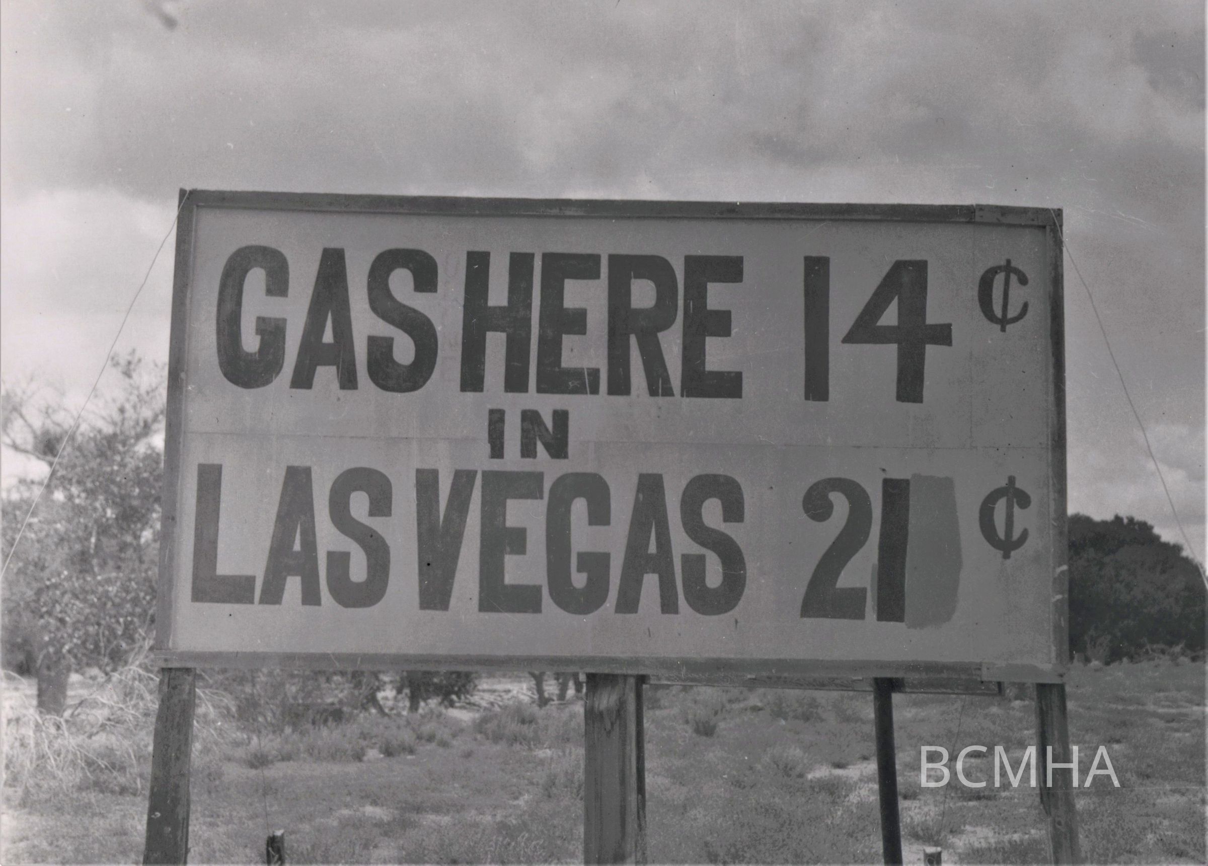 Las Vegas- sign advertising cheaper gasoline outside Las Vegas, ca. 1929-1930Entry/Object ID