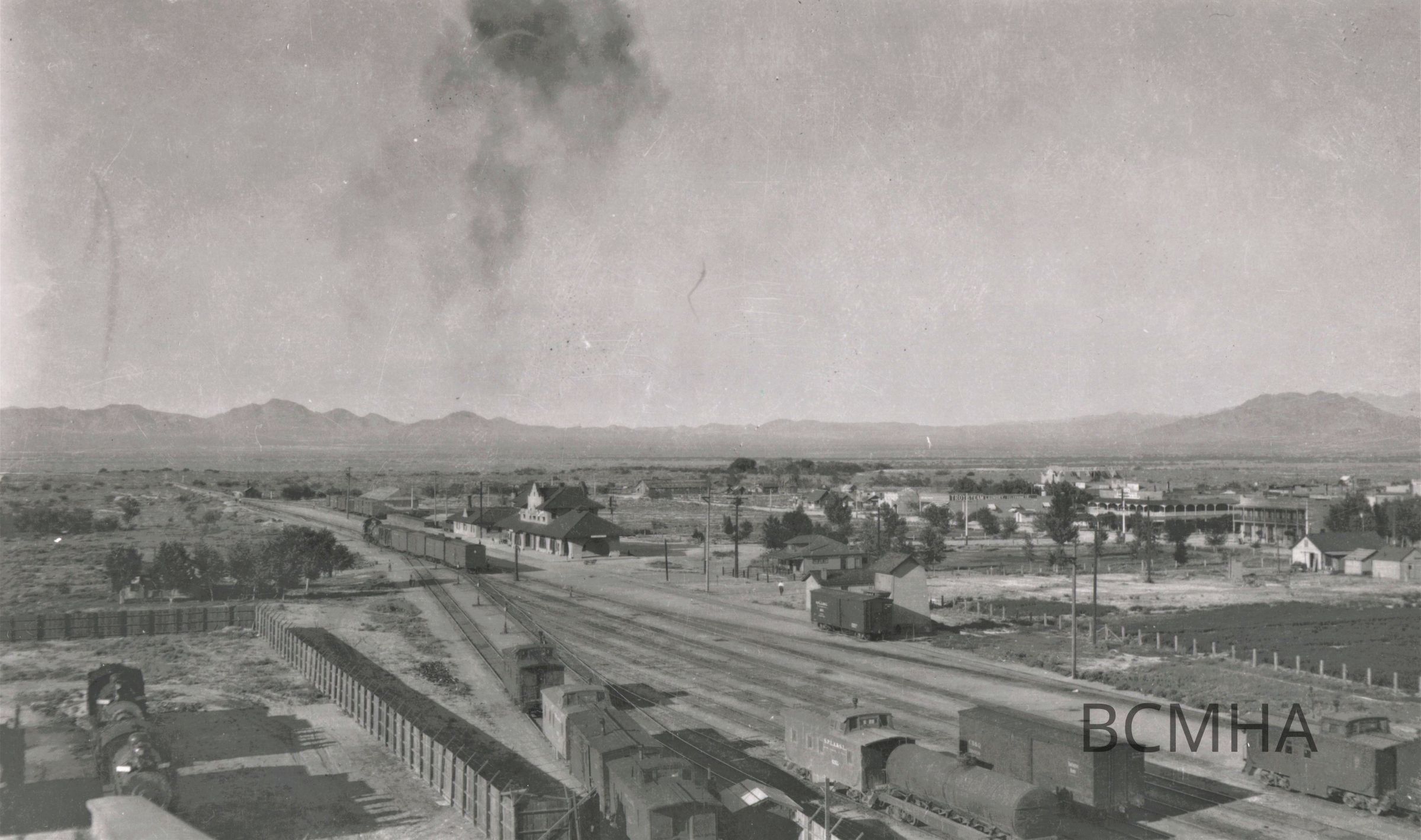 Las Vegas view across the San Pedro, Los Angeles, Salt Lake later Union Pacific Railroad Yards, ca. 1910; UNLS; McBride CollectionCollection