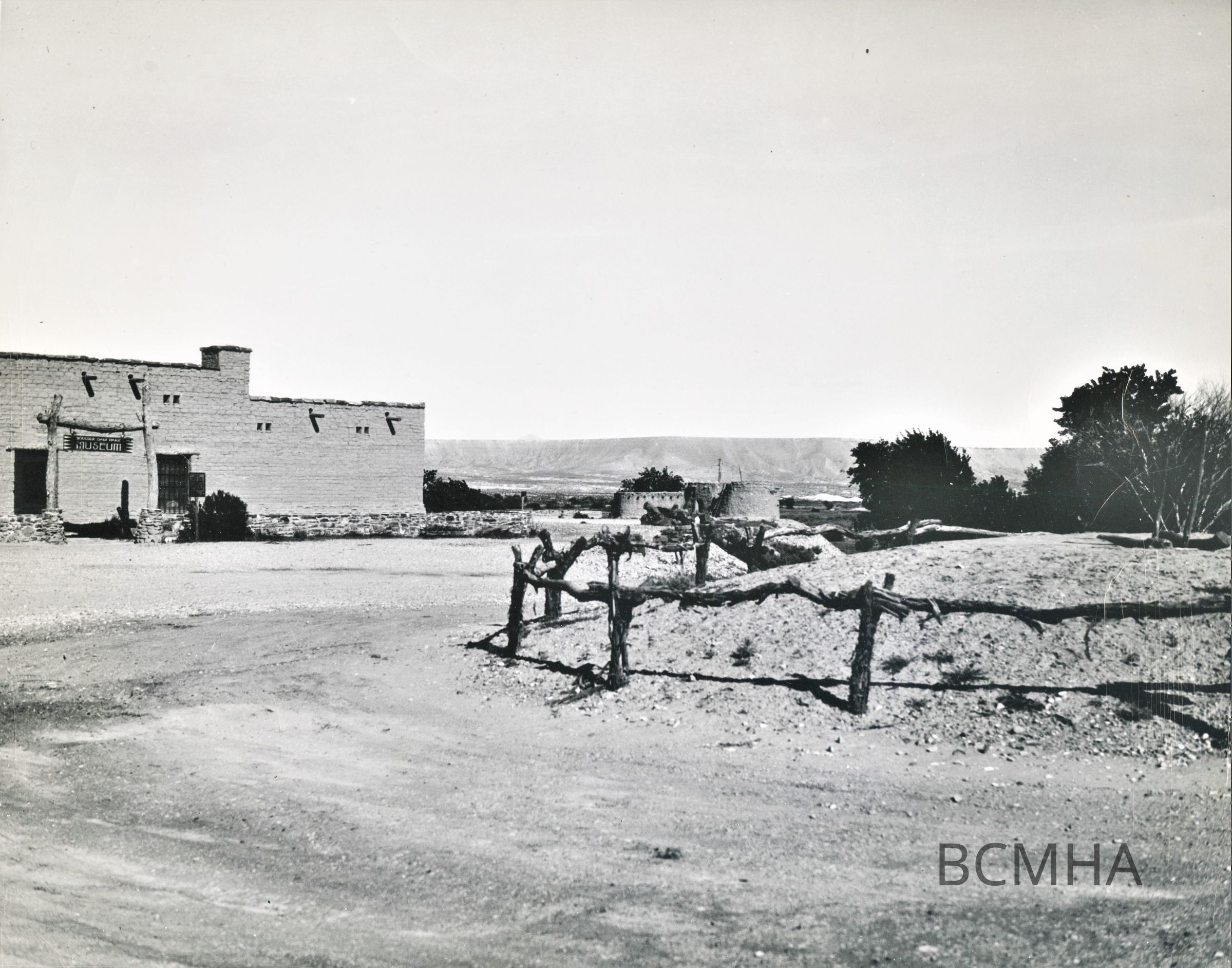 Lost City, NV.- "View of museum and kiva at Overton. In the background, reproductions of type of Indian dwellings flooded over by Lake Mead", c. 1936-37Collection